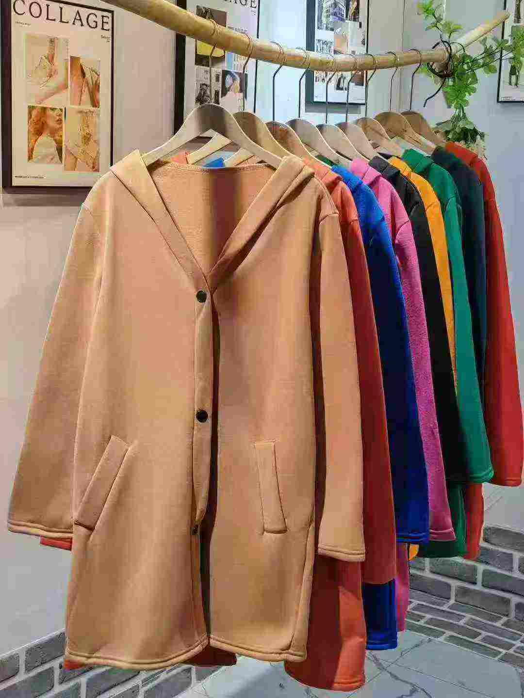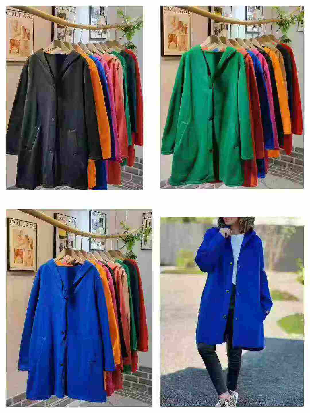 This listing offers women’s plus size long hooded cardigans from Clothing Stock Lots, around 350 pieces, mixed colors, individually packed polyester velvet.