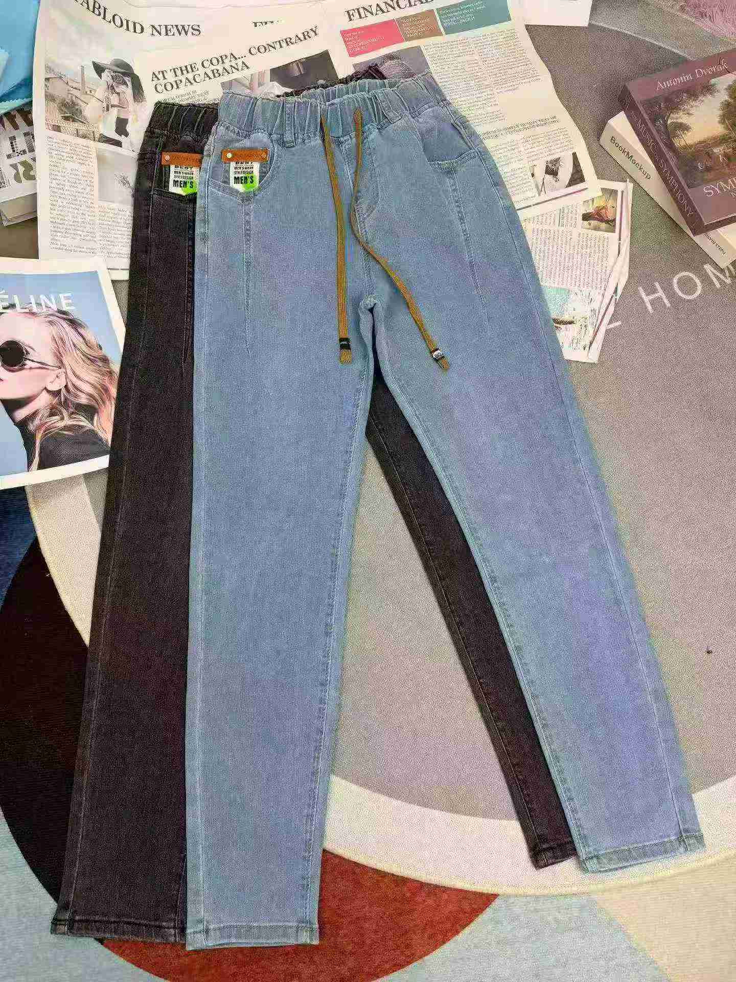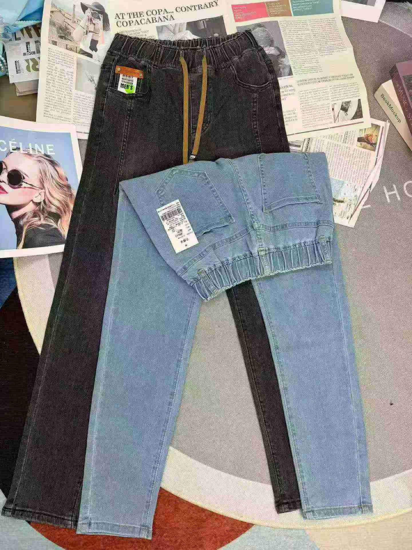 We have 70 pieces of stretch harem dad jeans in 2 colors with individual packing, these are quality ready Clothing Stock Lots for wholesale.