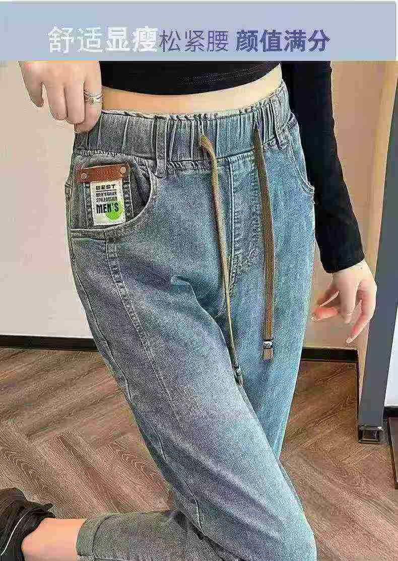 Elastic High Waist Loose Stretch Harem Dad Jeans, 2 Colors, 70 Pieces Total, Sizes 26-34, Individual Packing