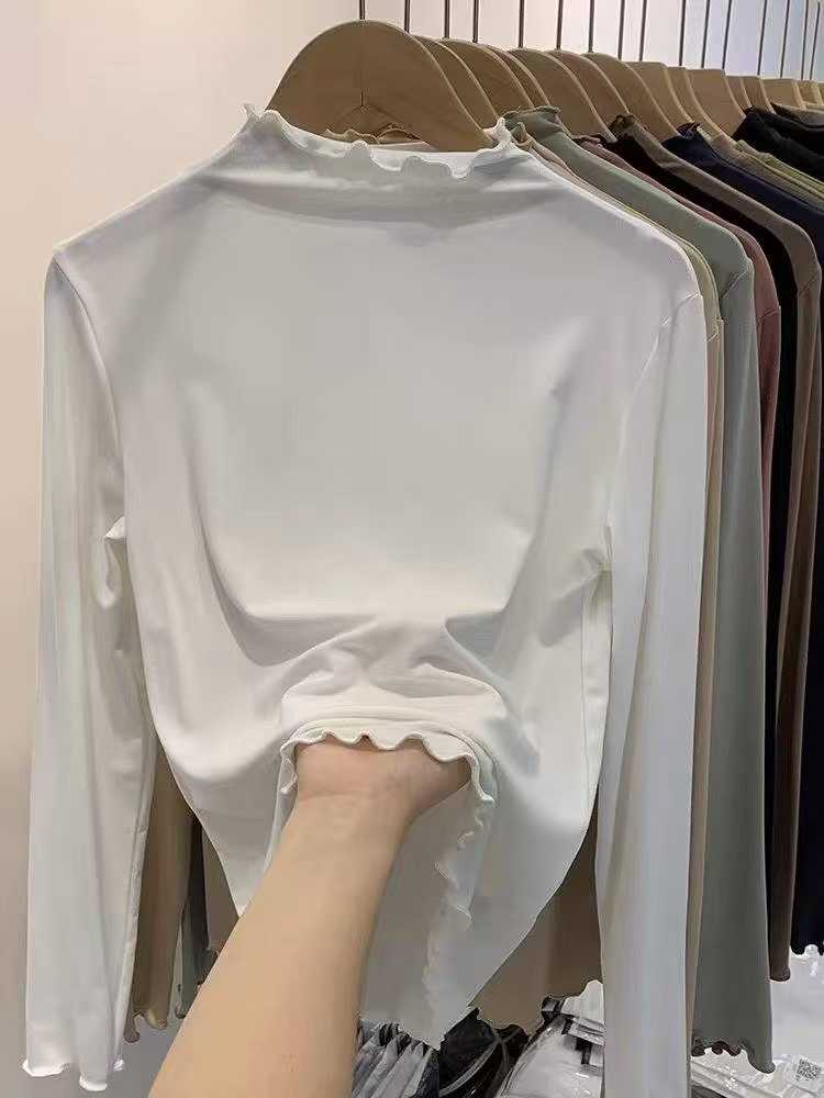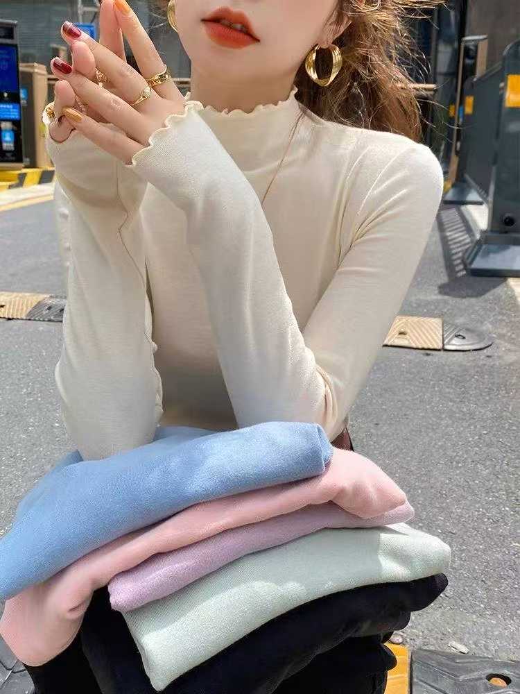 Fall Must-have Ruffled Mock Neck Brushed Stretch Base Layer Tops – Chinese Clothing Stock Lots Wholesale