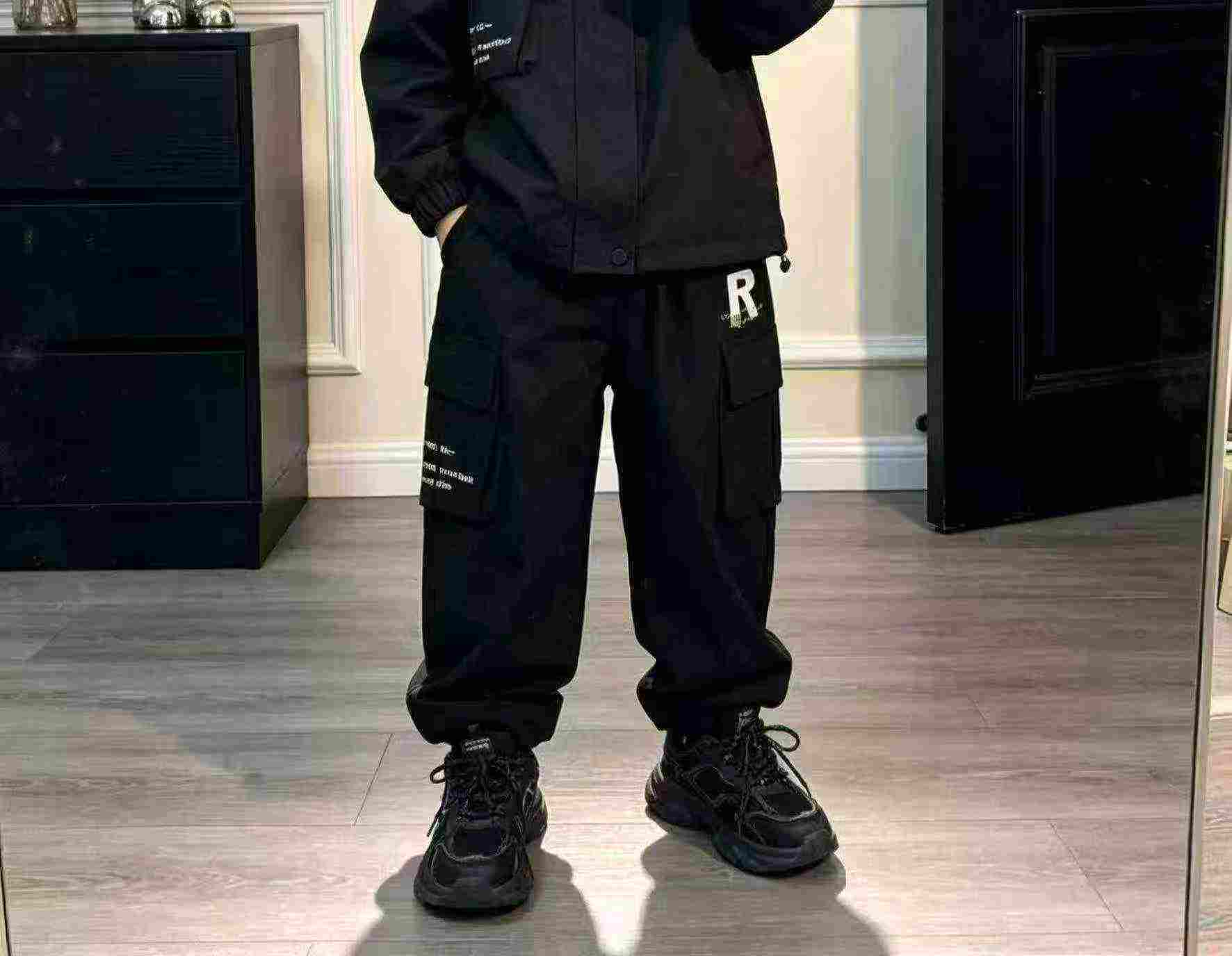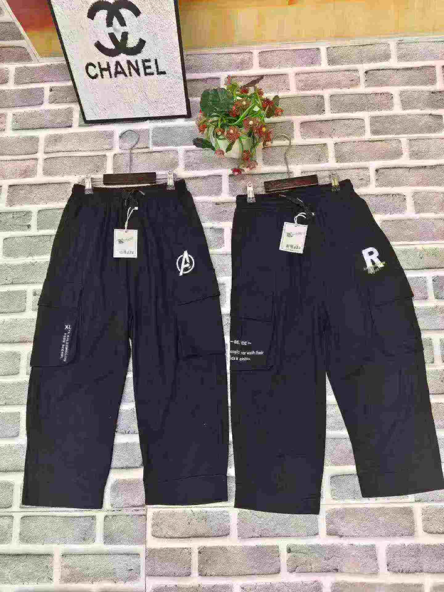This batch of Clothing Stock Lots includes soft high-quality kids cargo pants, approx 300 pieces, two styles, with tags and individual packing.