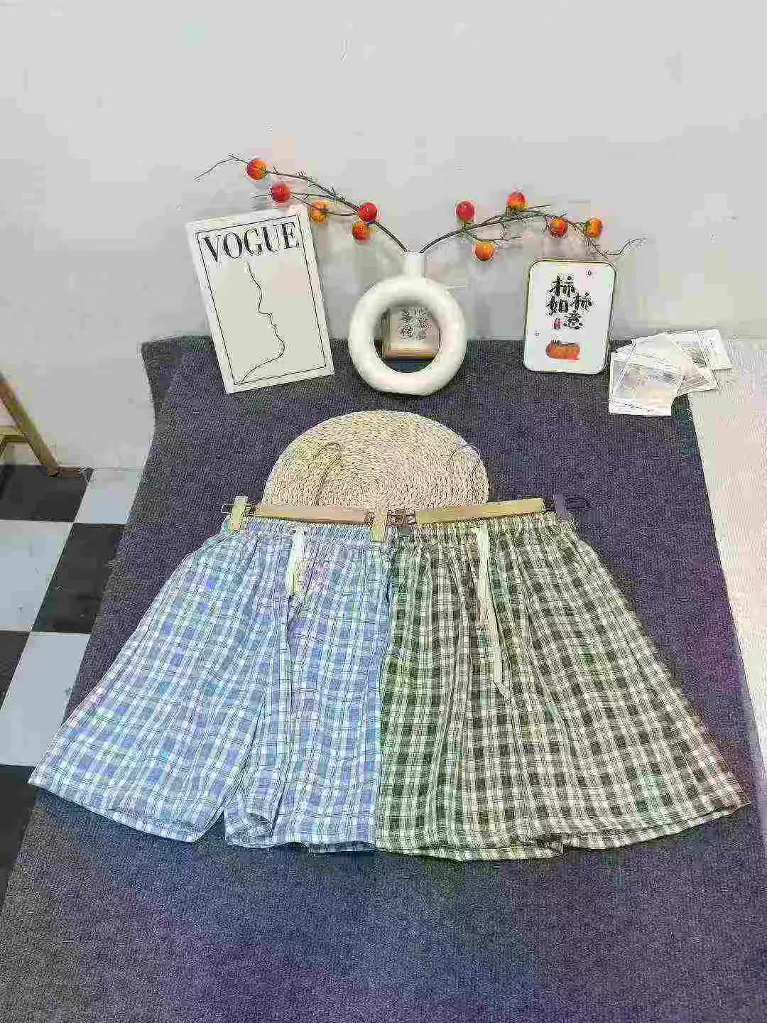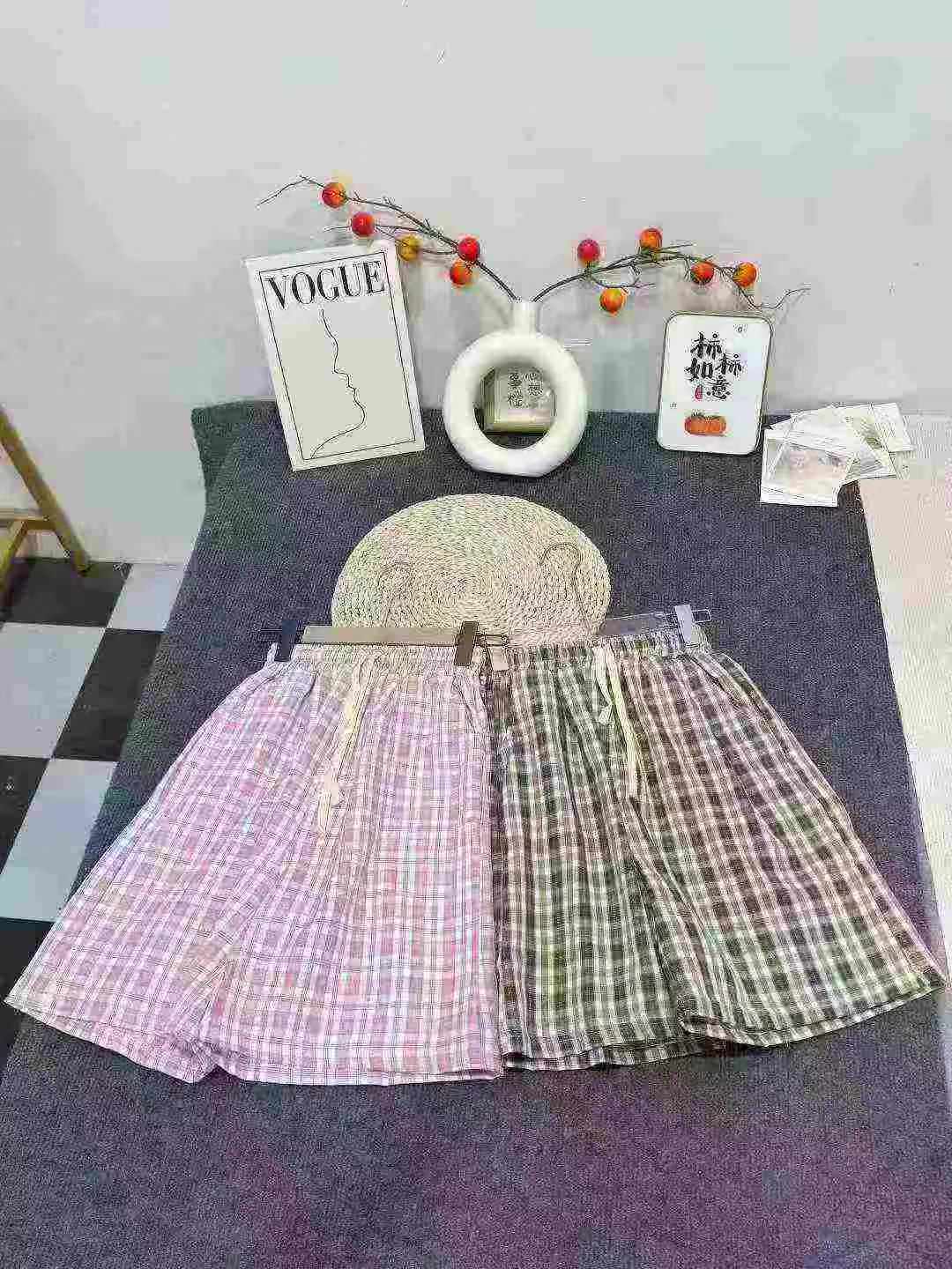 High Waist Drawstring Loose Plaid Wide Leg Knee-Length Pants Bulk Clearance Stock For Wholesale Export