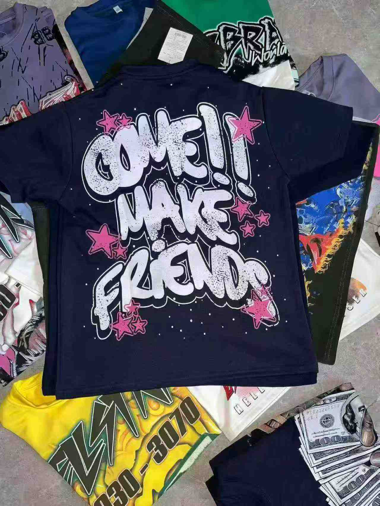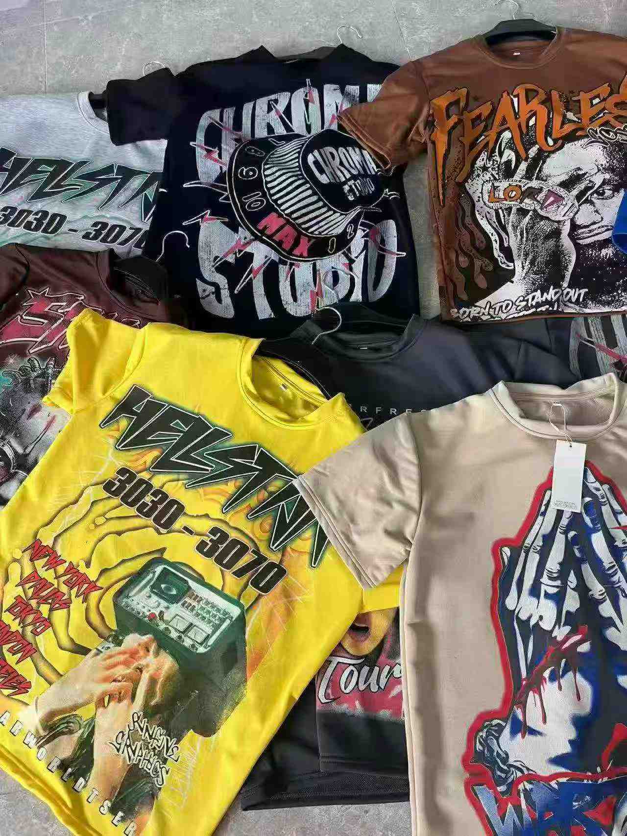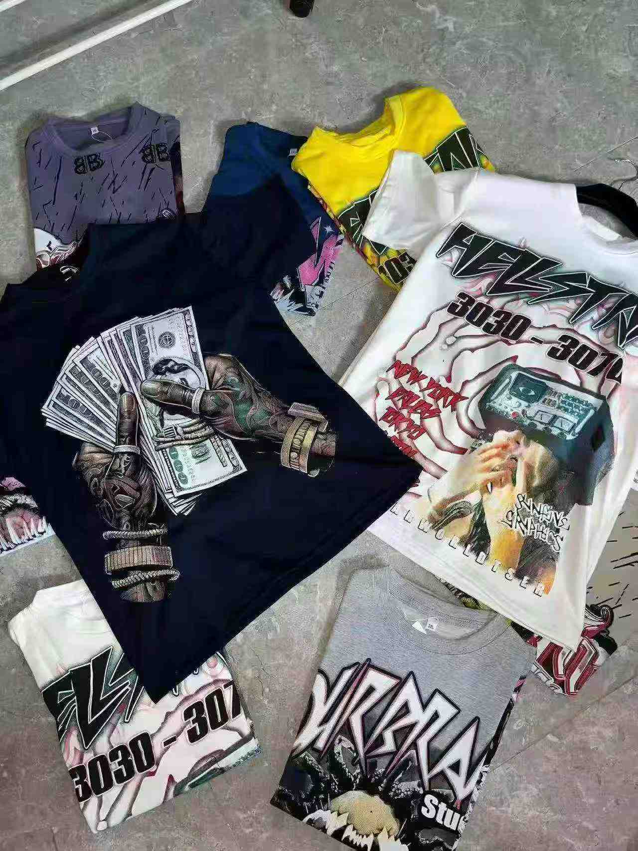 As a reliable stock lot supplier, we offer this popular t-shirt style as part of our Chinese clothing stock lots for wholesale export. This 350g heavyweight unisex cotton t-shirt comes in plus sizes from 2XL to 4XL, featuring diverse patterns with AB-side large prints. It is a favored choice for the African market, with individual packaging and hang tags ready for resale. This quality stock clothing offers great value for bulk clothing wholesale buyers, matching the demand for large-sized casual wear.
