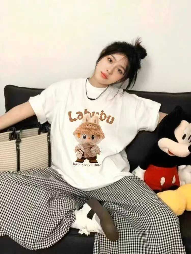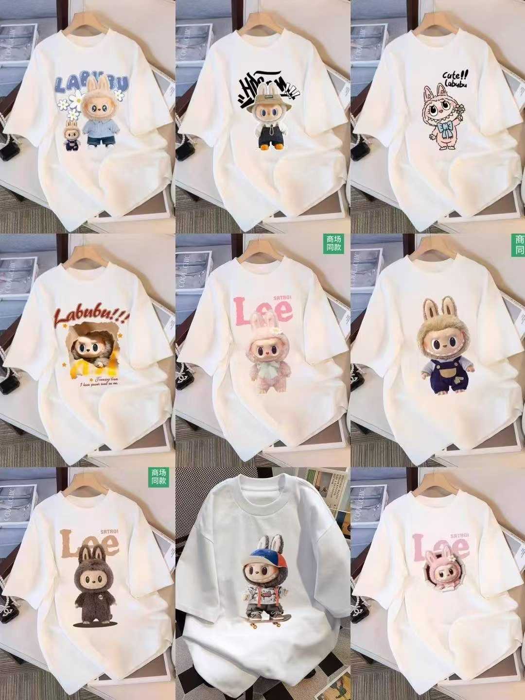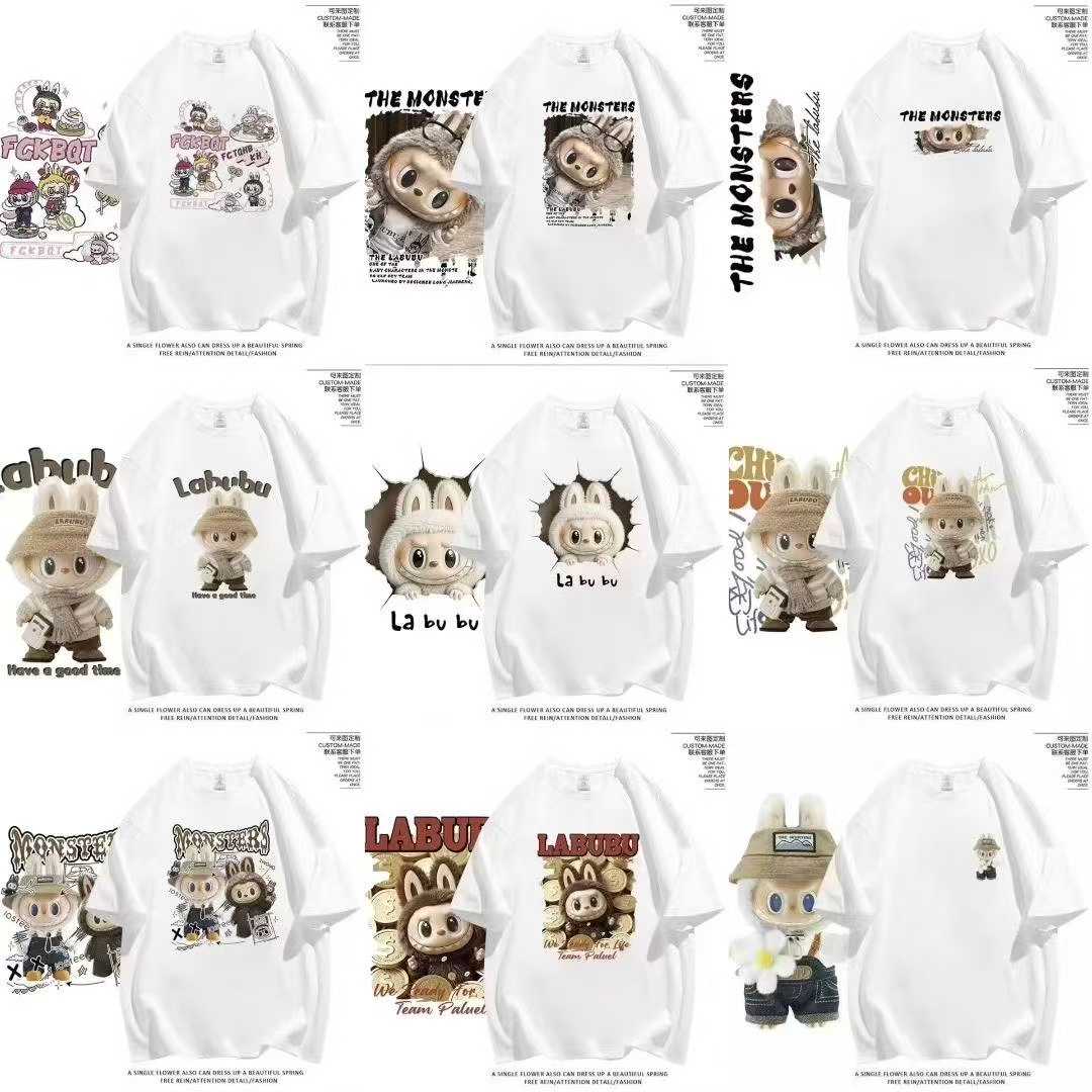 Hot Selling Labubu Print Short Sleeve Combed Cotton T-Shirts Bulk Wholesale Chinese Clothing Stock Lots