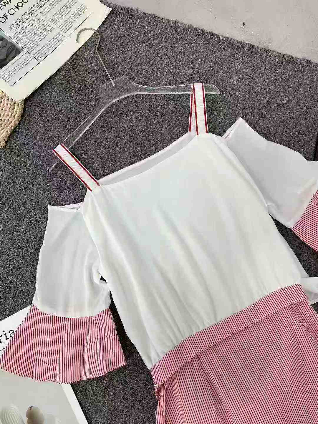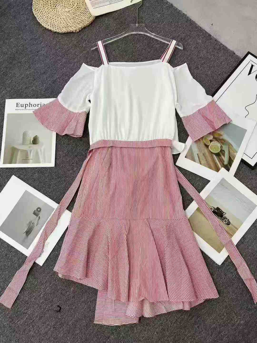 Korean Style Sexy Off-shoulder Color-block Striped Strappy Dress, 337 Pieces Total, Bulk Chinese Stock Clothing Wholesale Export
