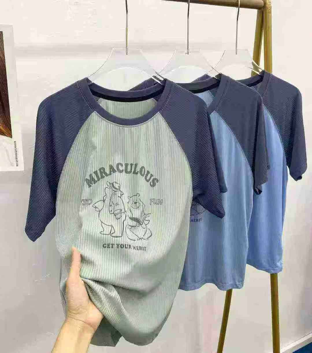 Loose Plus Size Ice Silk Printed Short Sleeve T-shirts, Total 1165 Pieces, 10 Pieces Per Pack