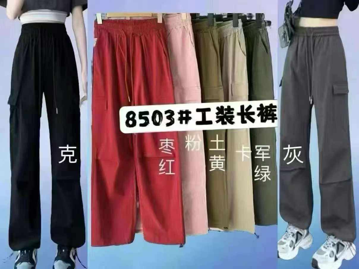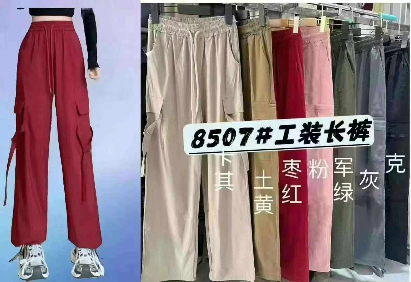 This is a batch of summer cargo pants from Chinese apparel overstock. Crafted with bamboo slant twill fabric and featured high elasticity, one size fits most. Minimum order is 100 pieces for wholesale.