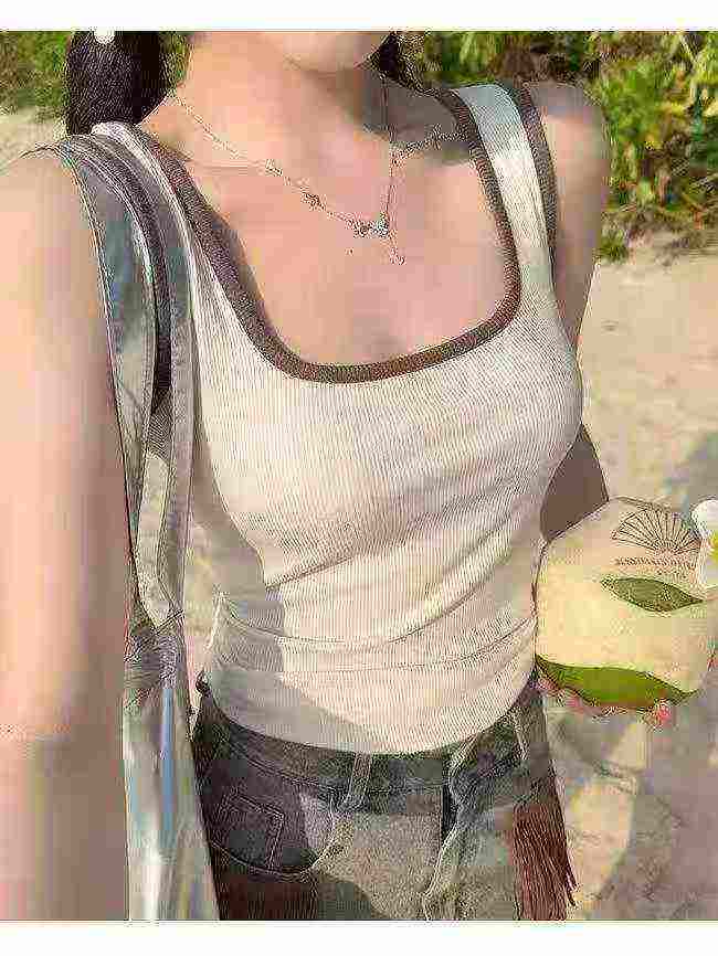 New Square Neck Colorblock Wide Strap Camisole Tank Top Women Inner Wear, 850 Pieces Stock Clearance