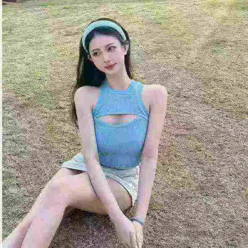 Sexy Hollow Out Vertical Texture Slim Fit Sleeveless Cropped Tank Top Bulk Clearance Wholesale