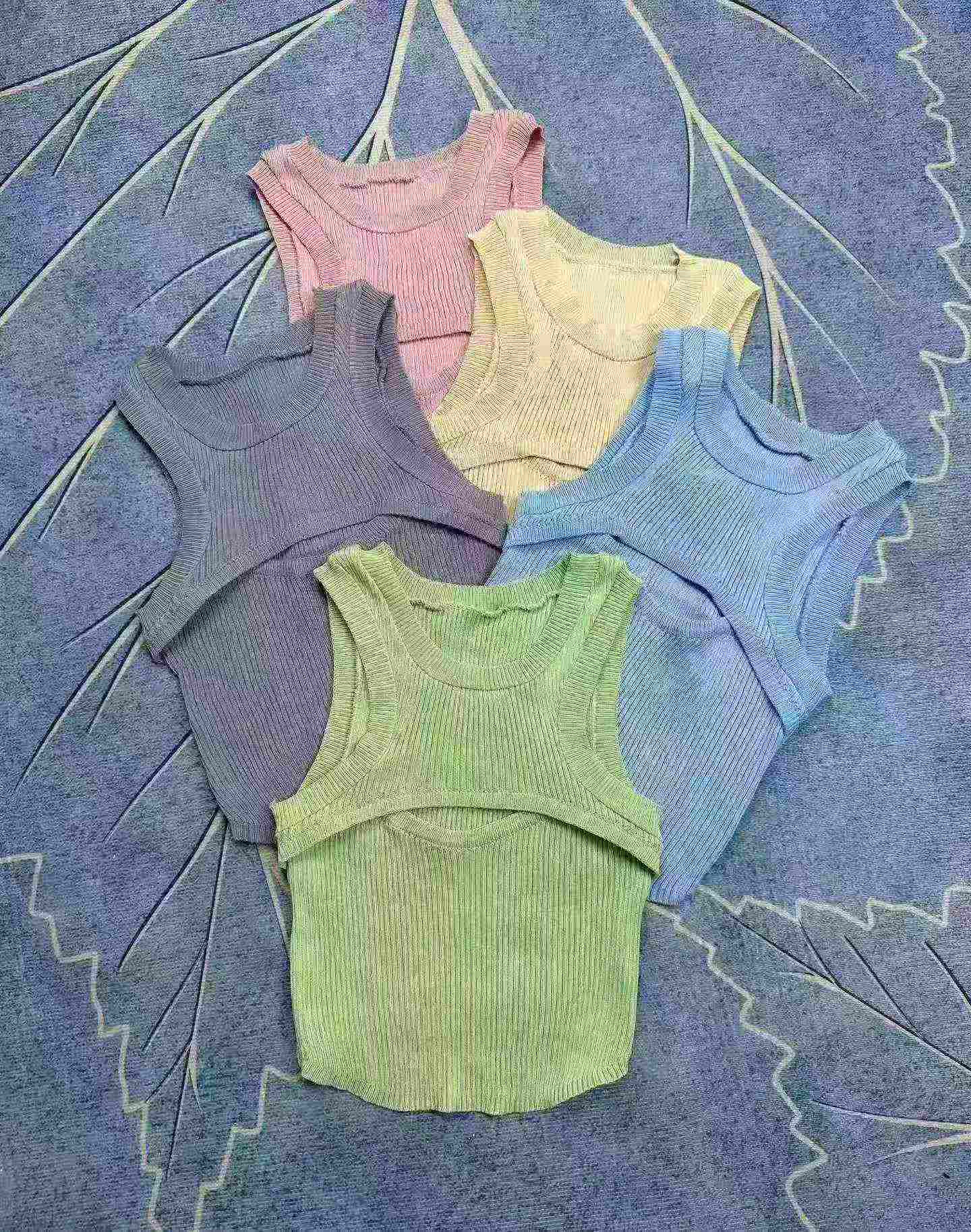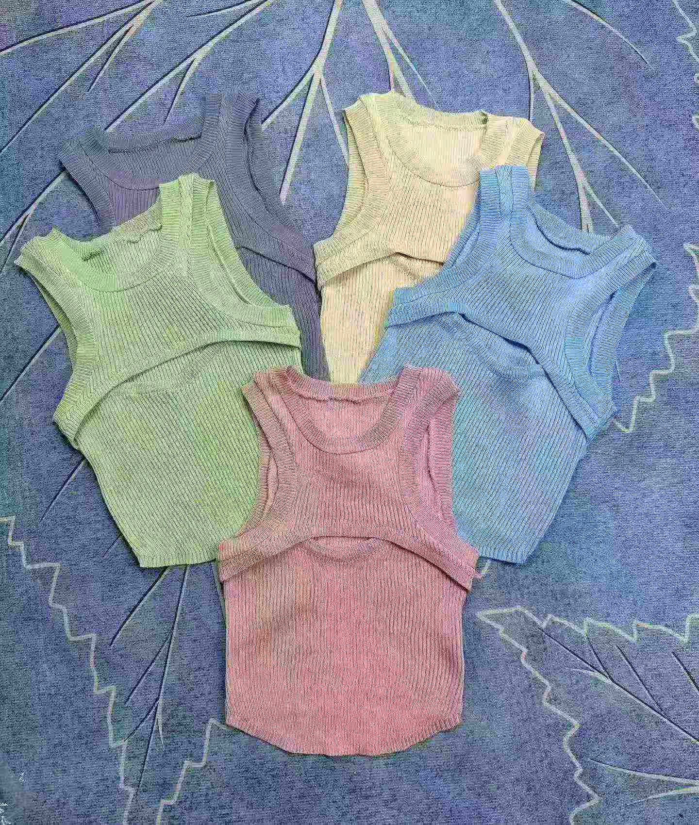 This is a batch of available in-stock cropped sleeveless tank tops. It features hollow out vertical texture and a slim cut that shows body shape, easy to match with different outfits. Each piece is individually packed, around 2000 pieces total for clearance.