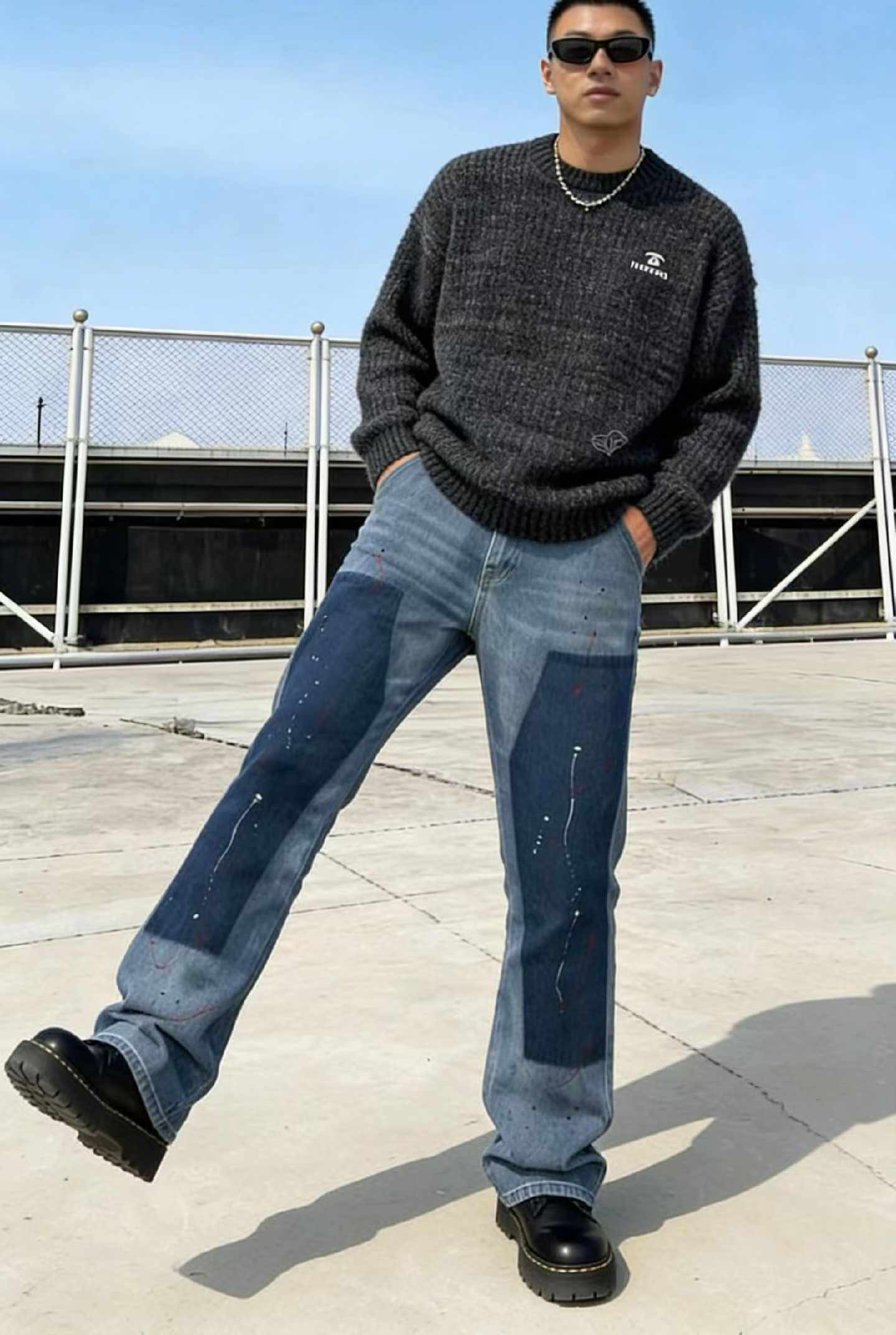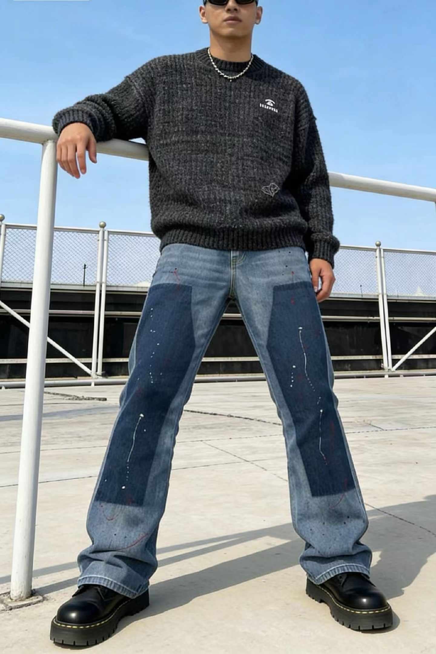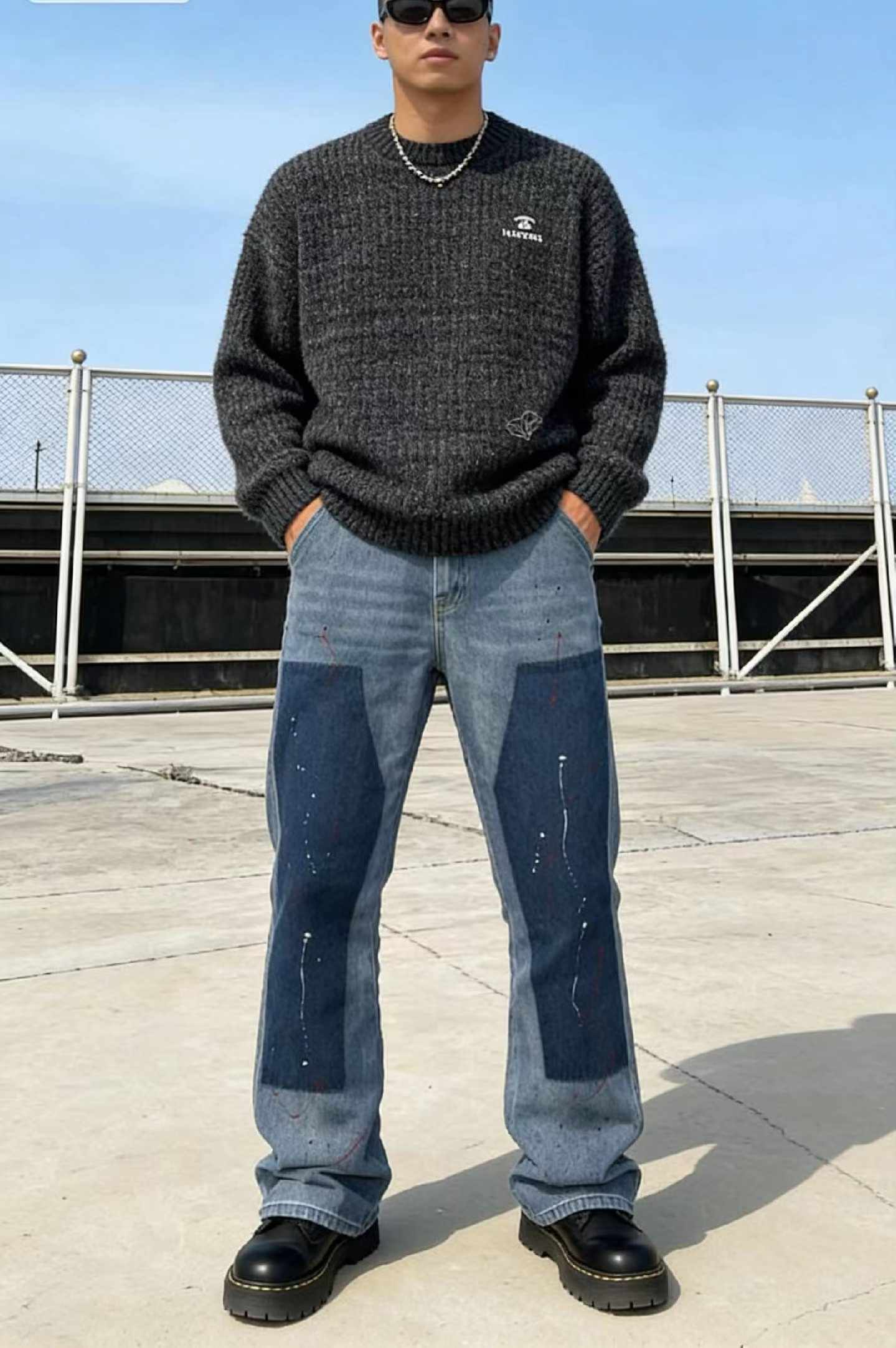 Spring New American Retro Color Block Patchwork Straight-Leg Denim Pants – 155 Pcs, Bulk Stock Lot Wholesale, All Clearance at 10.4 CNY Each