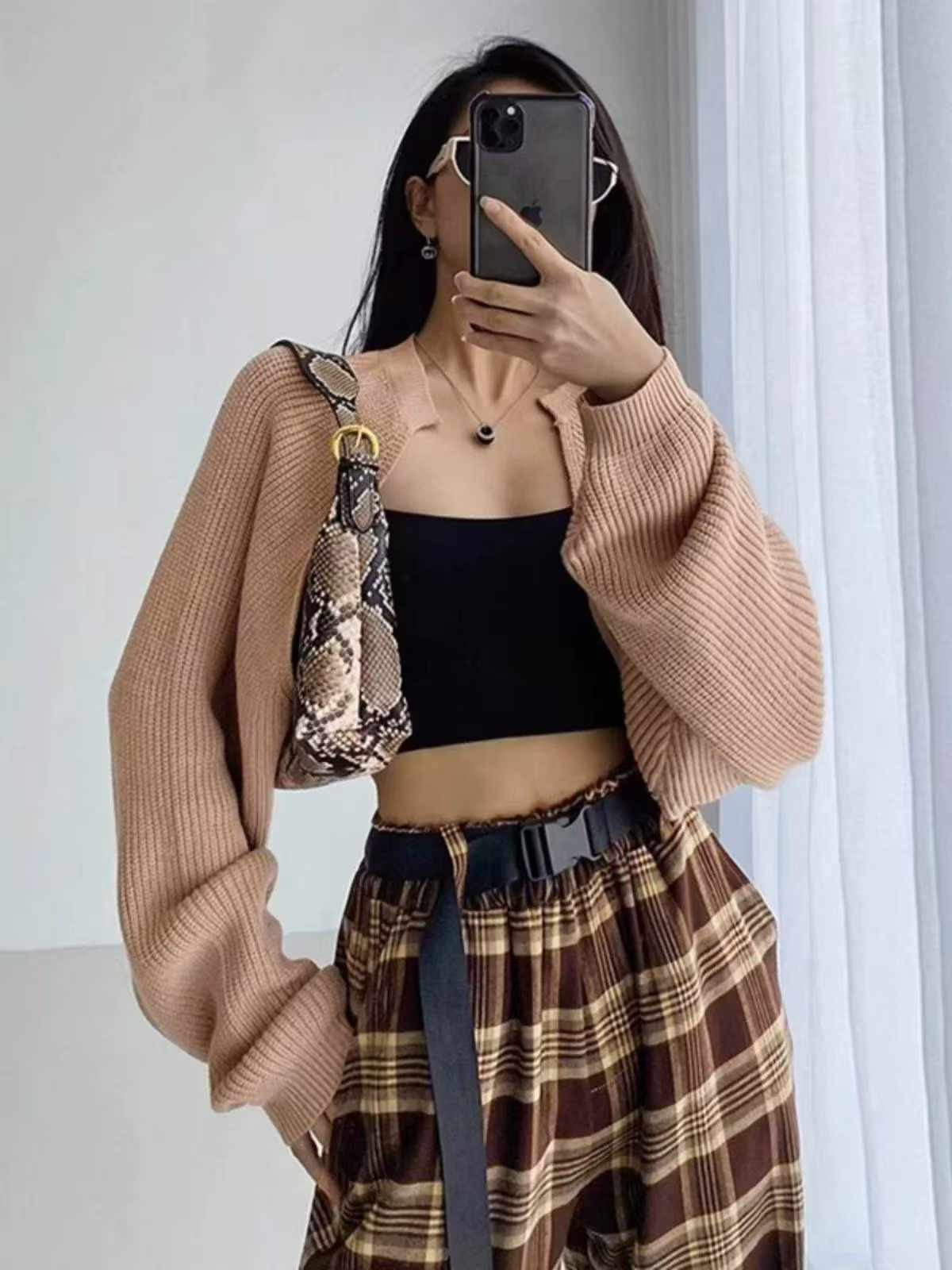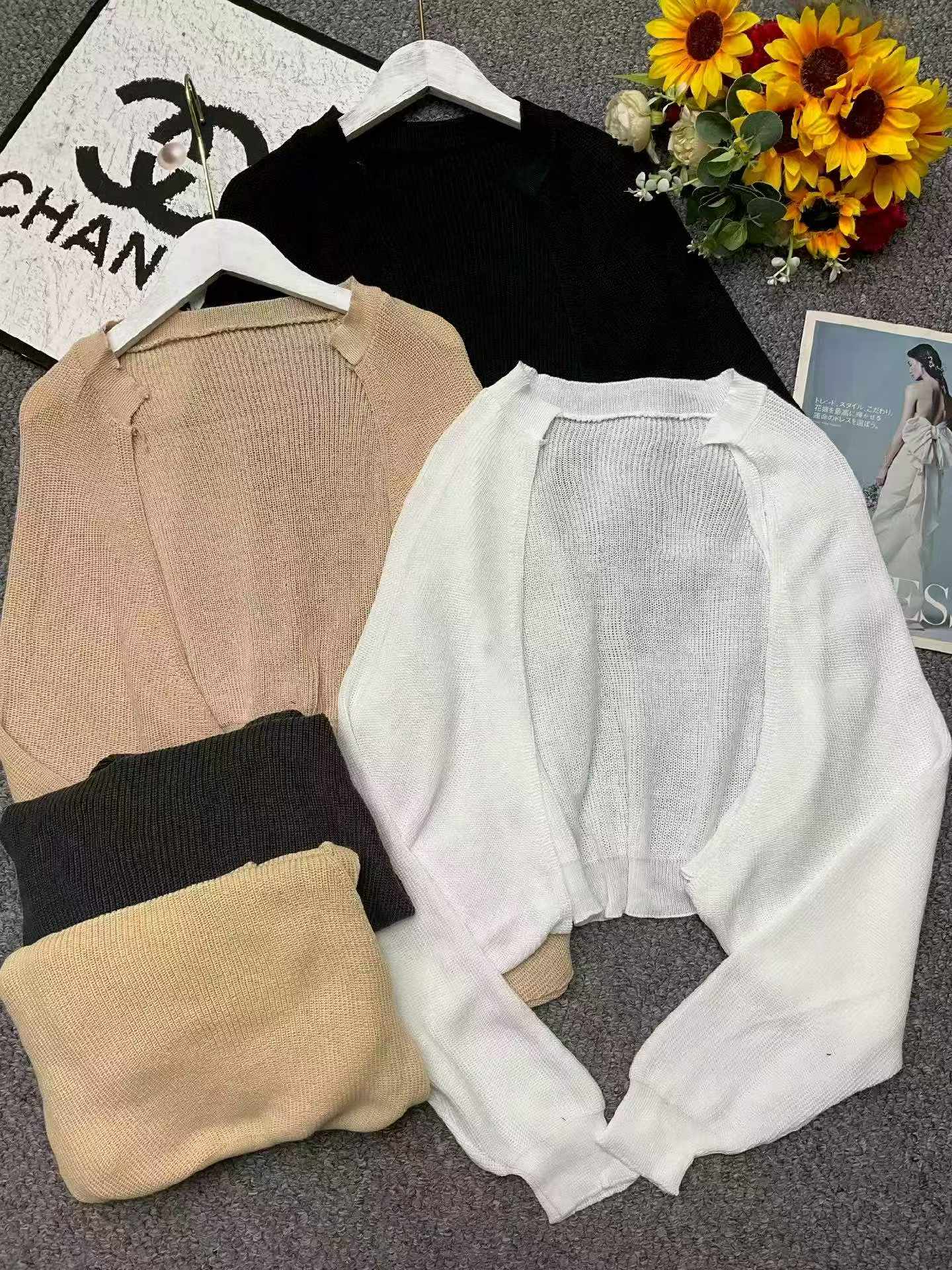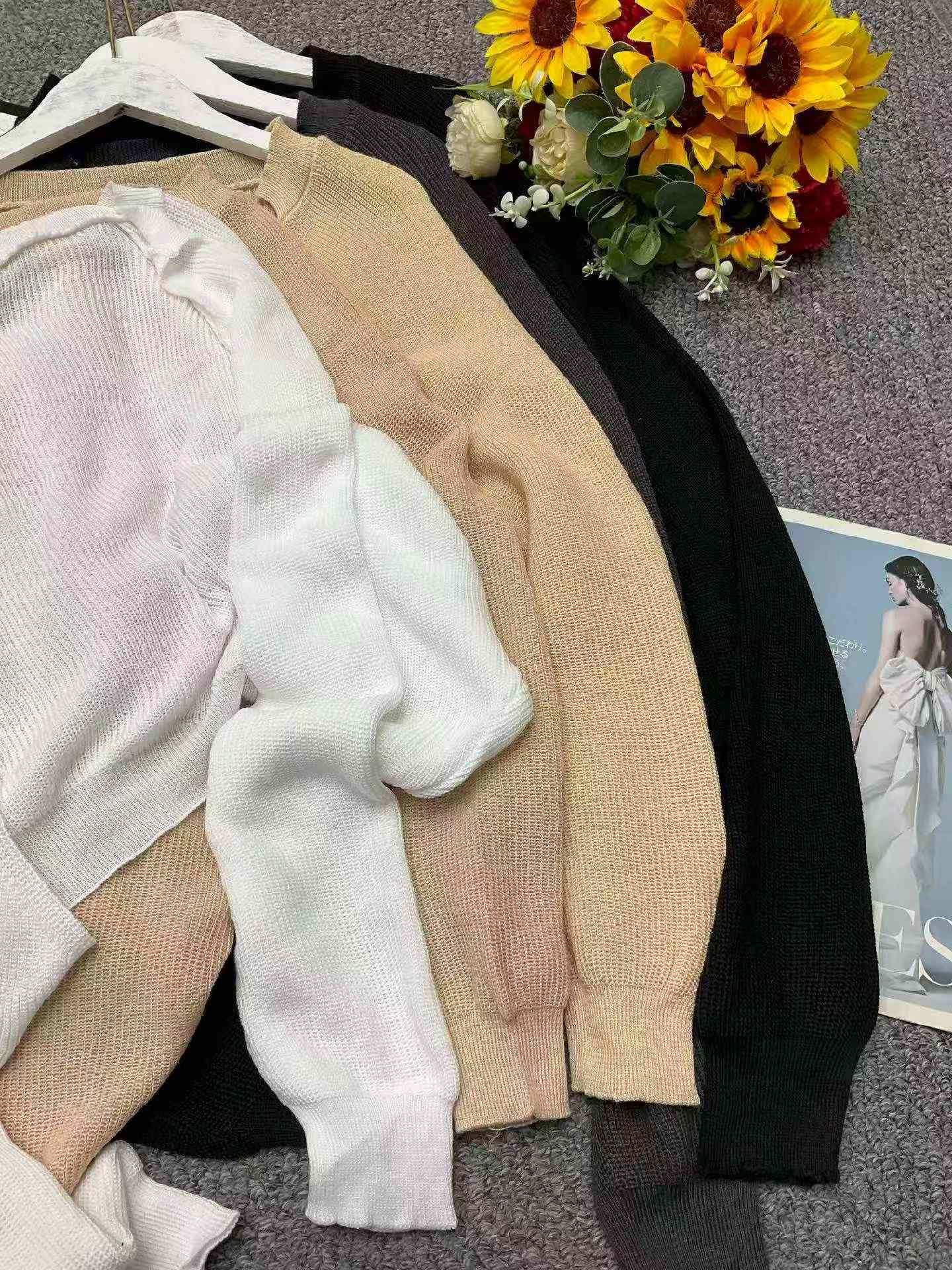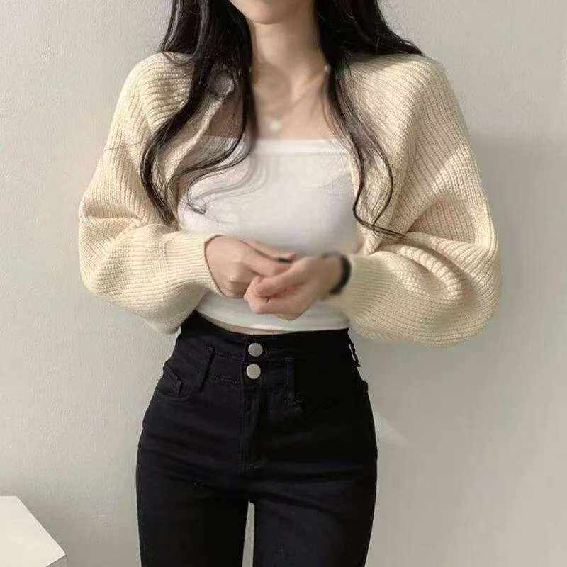 Spring New French Chic Lazy Lantern Sleeve Cropped Batwing Cardigan Sweater, 410 Pieces Wholesale Bulk Stock Clearance