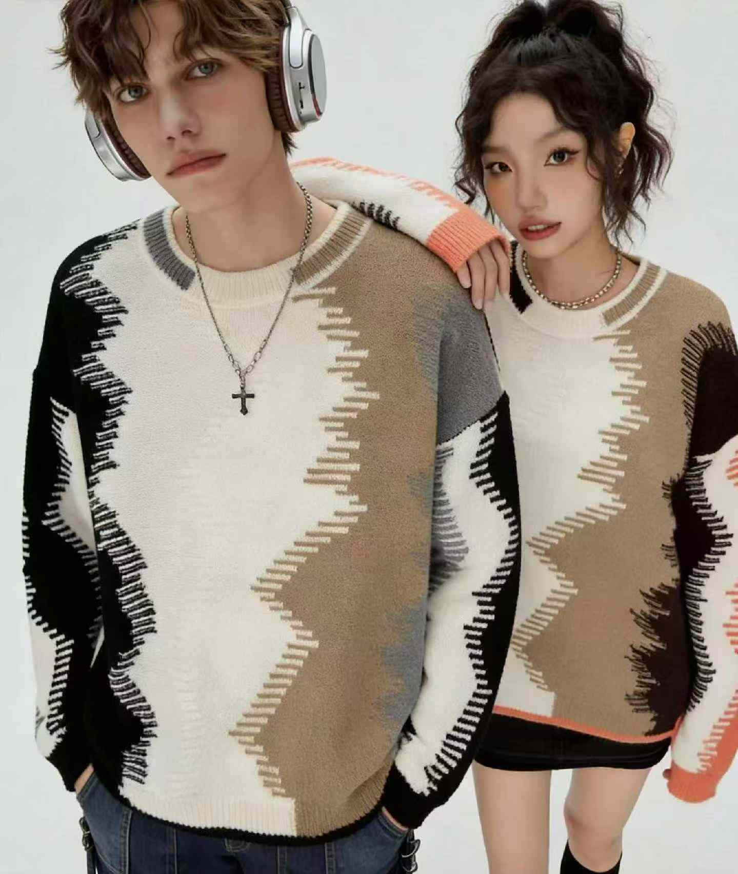 Spring New Retro Trendy Jacquard Pullover Sweater, 393 Pieces Bulk Stock Wholesale Clearance