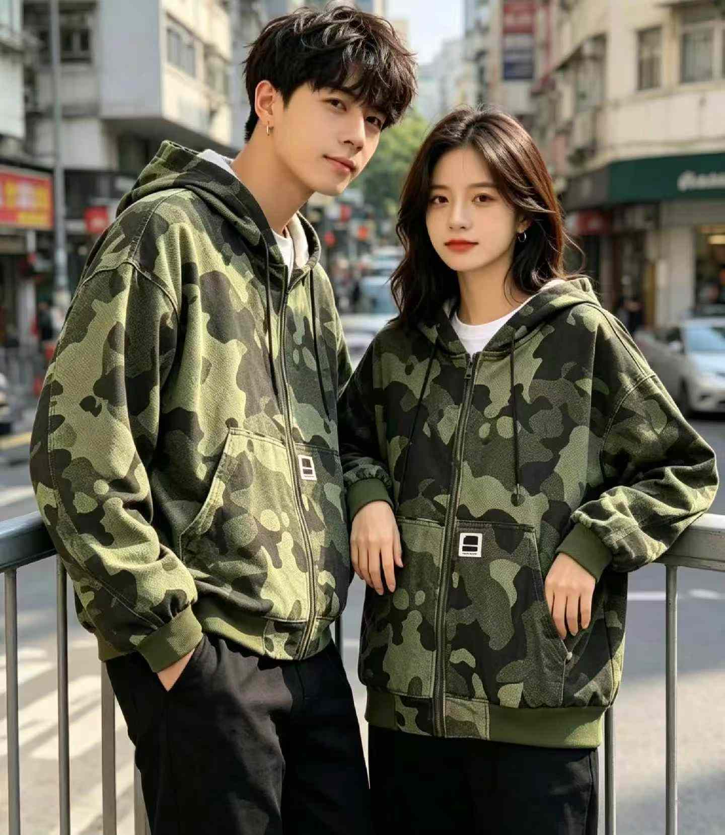 This unisex camo hooded cardigan jacket from Chinese clothing stock lots offers great value for bulk clothing wholesale and wholesale export of quality stock clothing.
