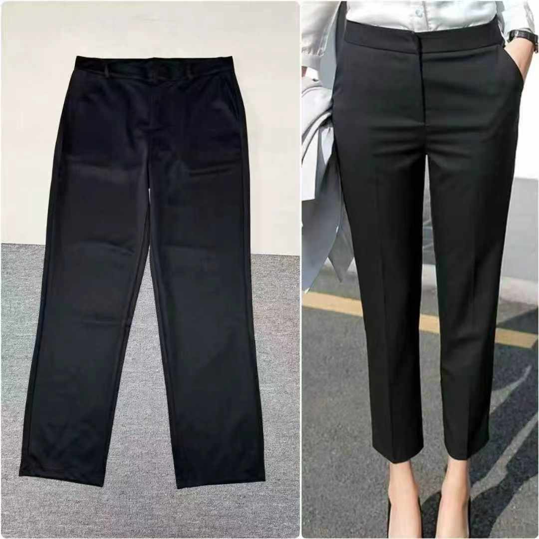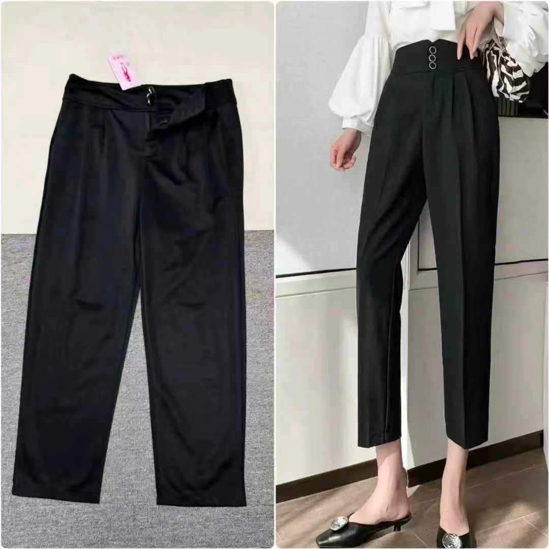 These high-waist slimming summer nine-point dress pants are Chinese clothing stock lots. As a stock lot supplier, we offer quality stock clothing for bulk clothing wholesale with great value for wholesale export.