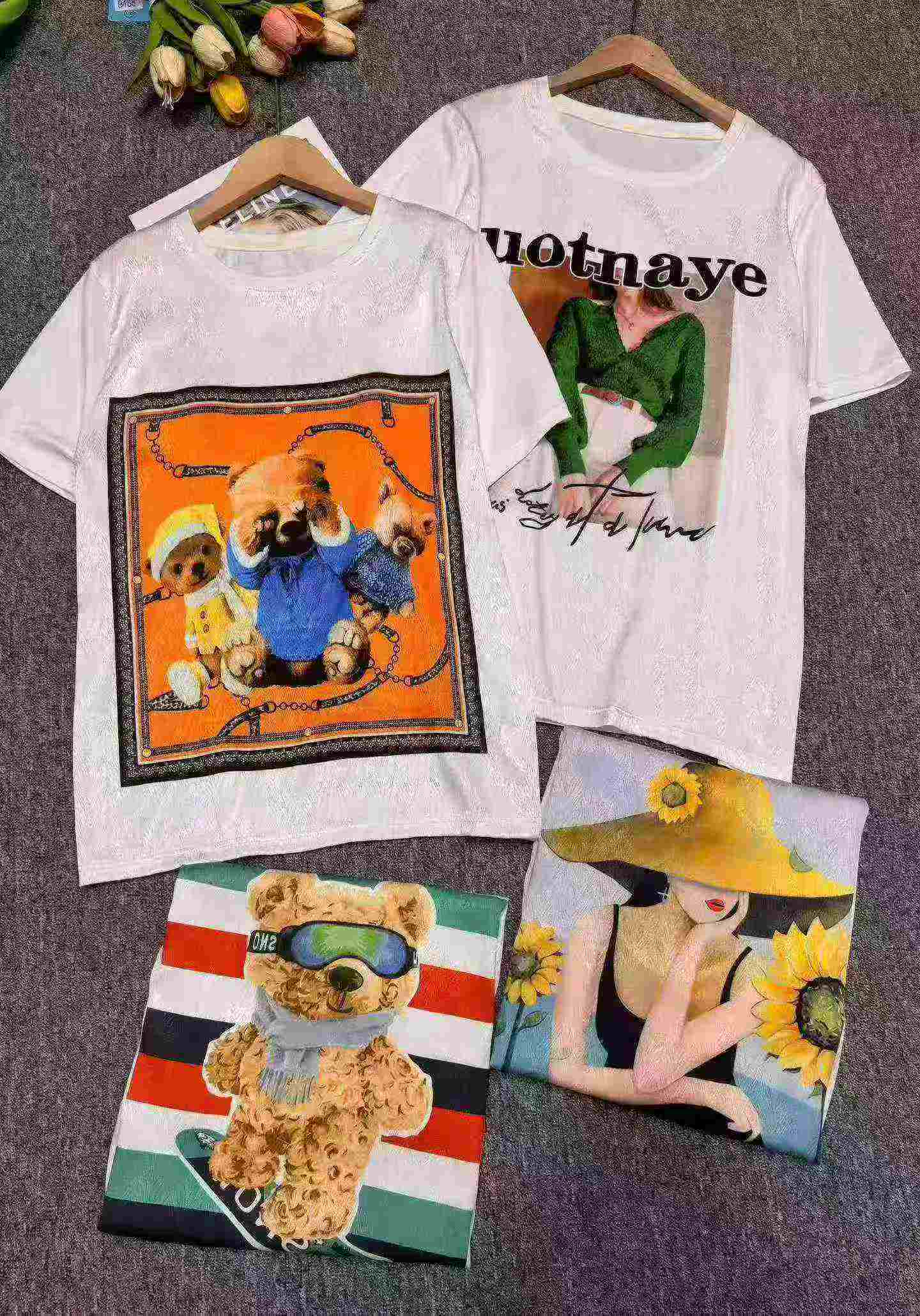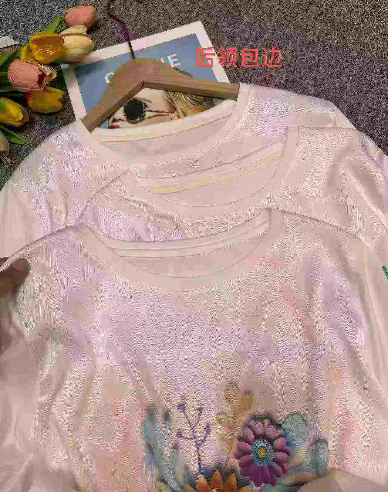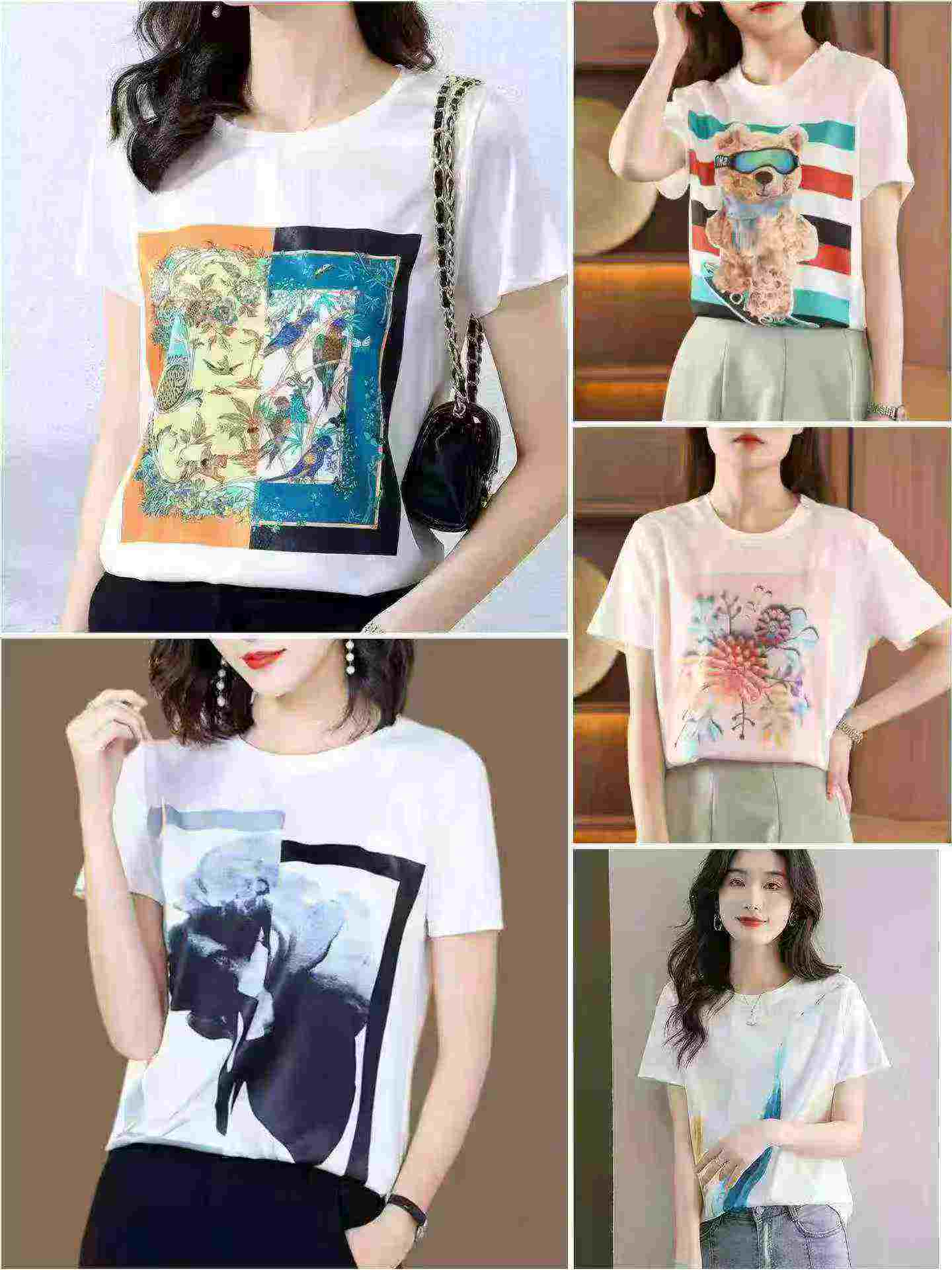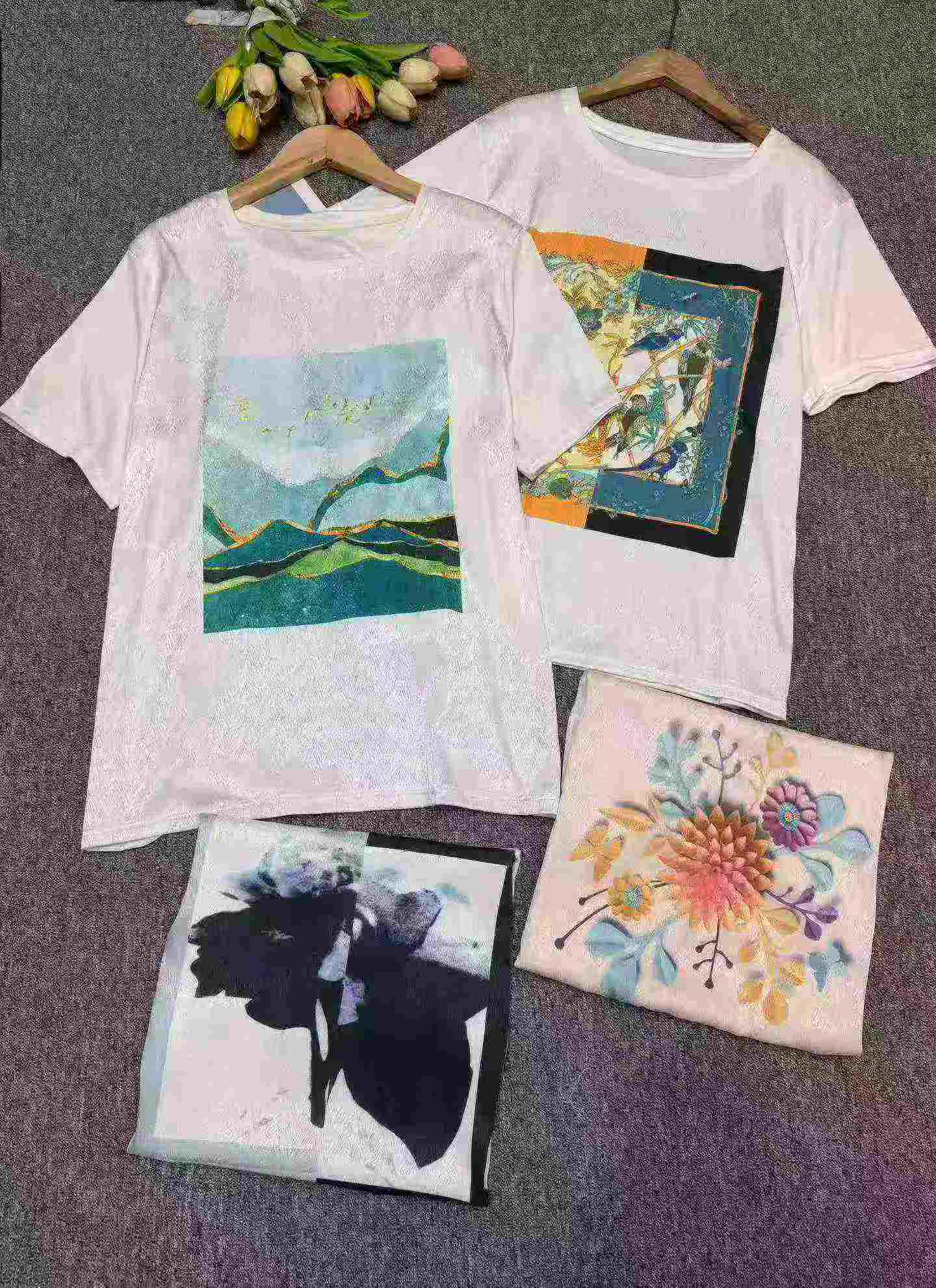 Summer Cool Quick Dry Tencel Printed Short Sleeve Tops, 2000 Pcs Chinese Clothing Stock Lots For Bulk Wholesale