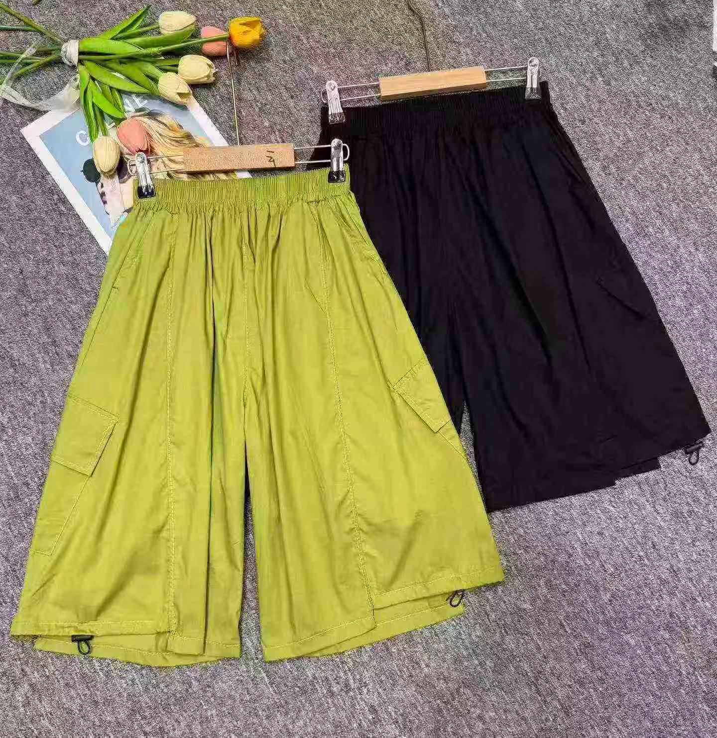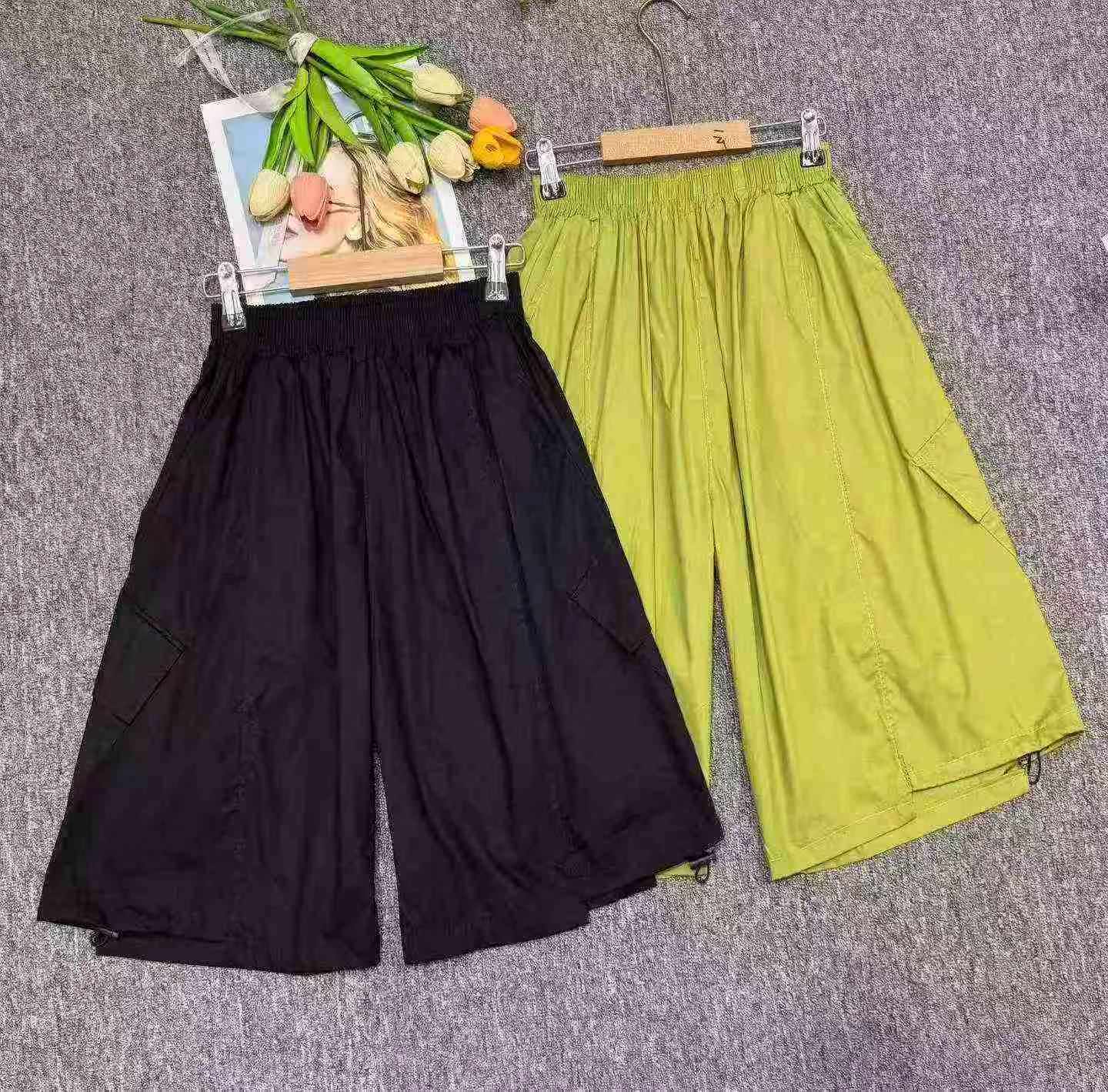 Summer Hot Selling Big Kids Ice Silk Cotton Trendy Casual Cargo Shorts, 2 Colors, Size 120-170, Total 137 Pcs Bulk Clearance