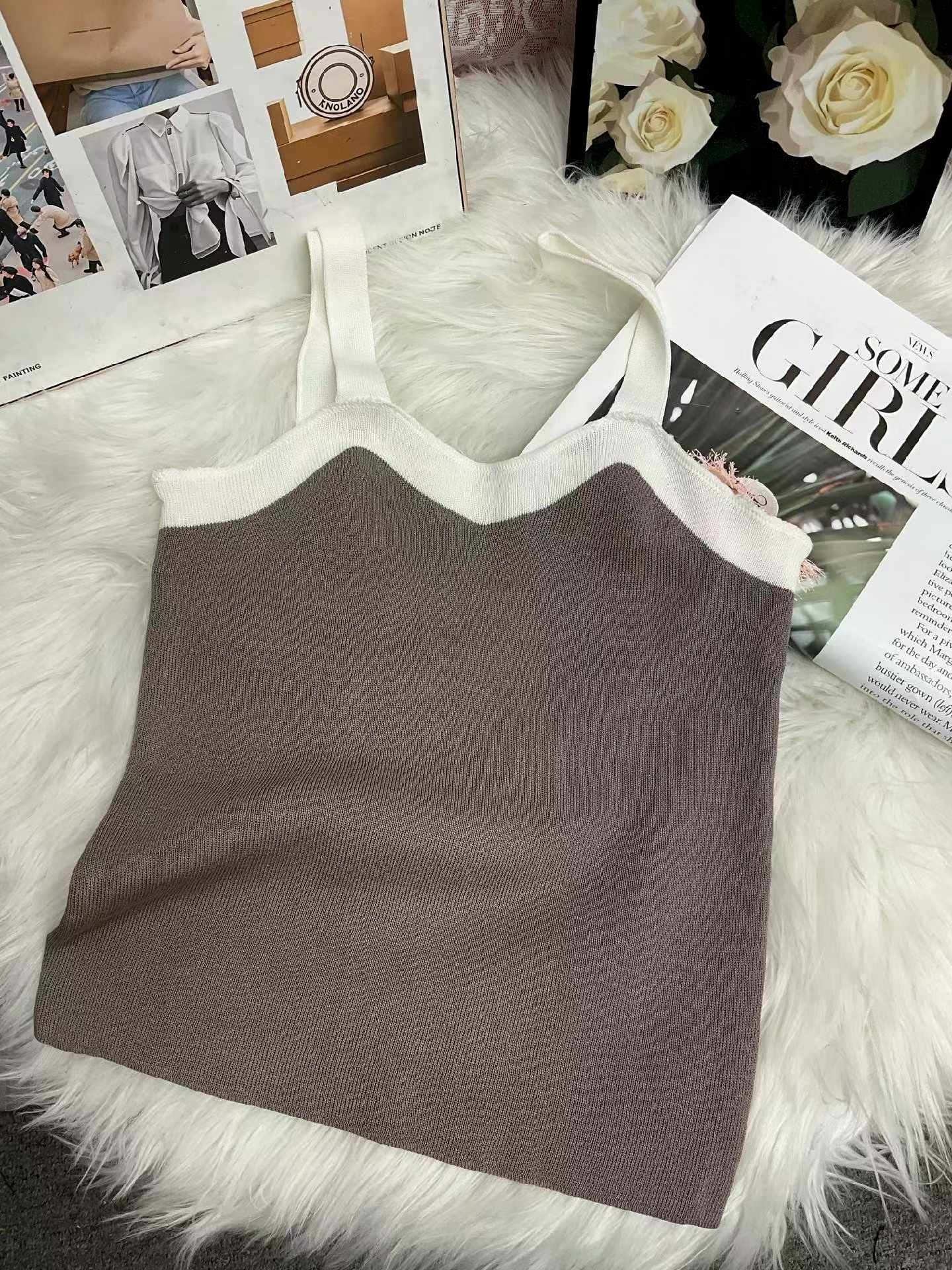 Summer New Design Color Block Stretch Knit Camisoles | 230 Pieces Stock Lot, Individually Packed, One Size, 5.4 CNY Each – Wholesale Export