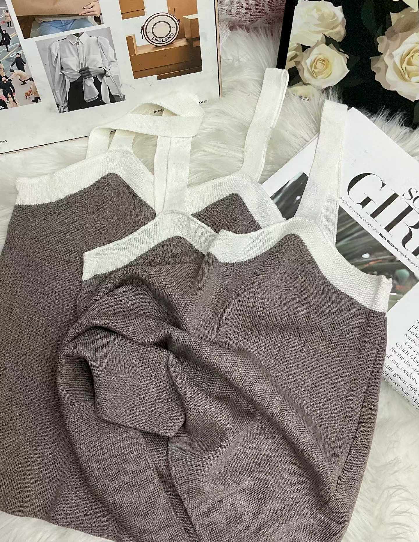 As a dedicated stock lot supplier, we are offering this batch of Chinese clothing stock lots: 230 pieces of summer color block stretch knit camisoles, available for wholesale export. These quality stock clothing items feature a trendy color block design, soft stretchy fabric, and come individually packed in one size.