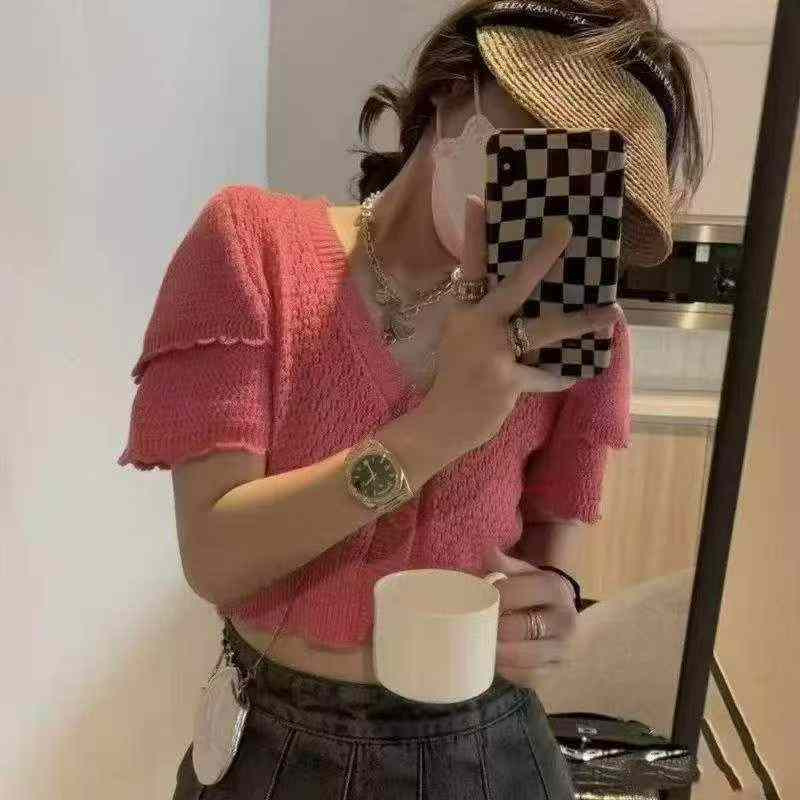 Summer New Design Tweed-style Ice Silk Knit Short Sleeve Cardigan About 600 Pieces Stock Lot Wholesale
