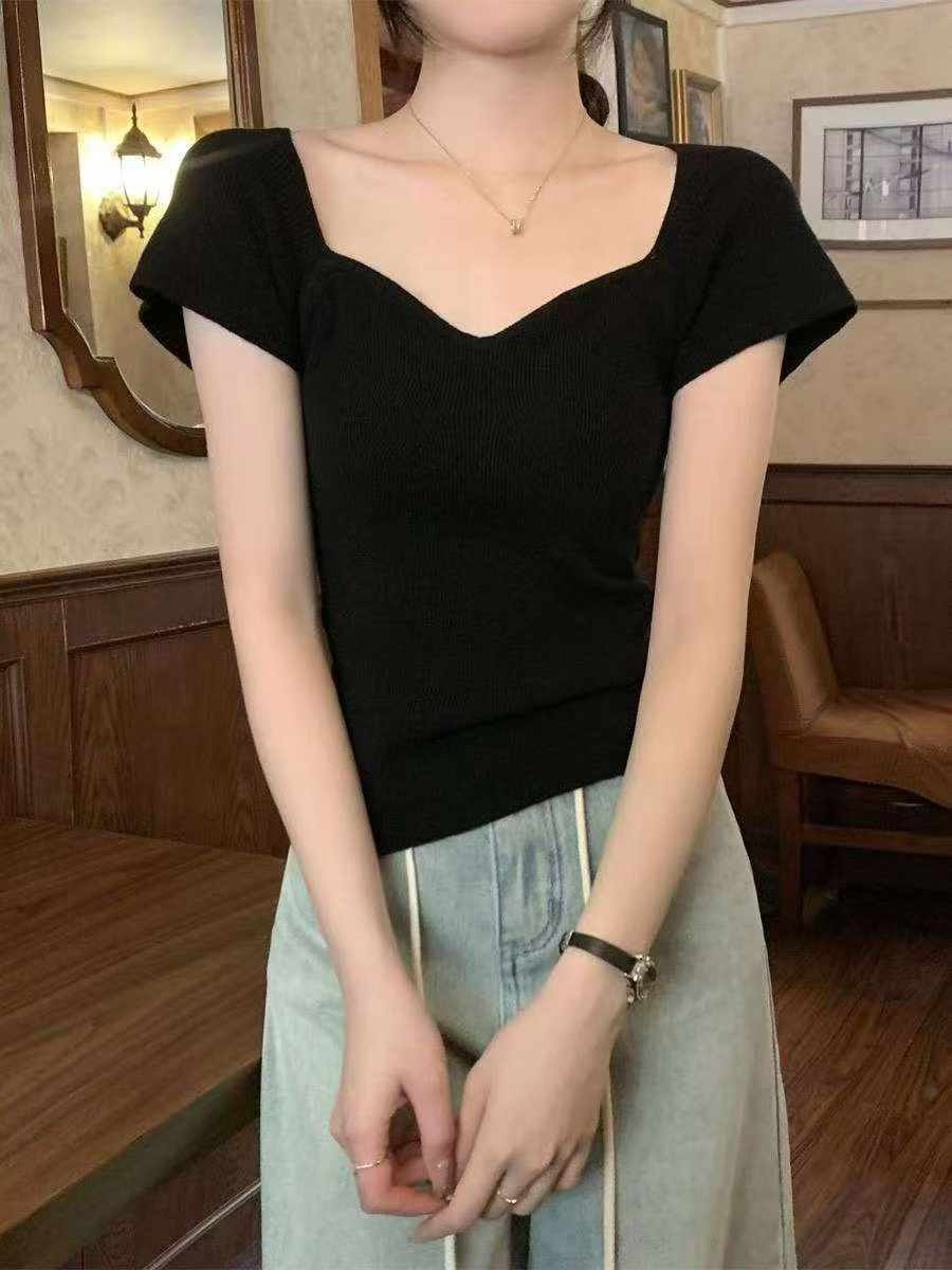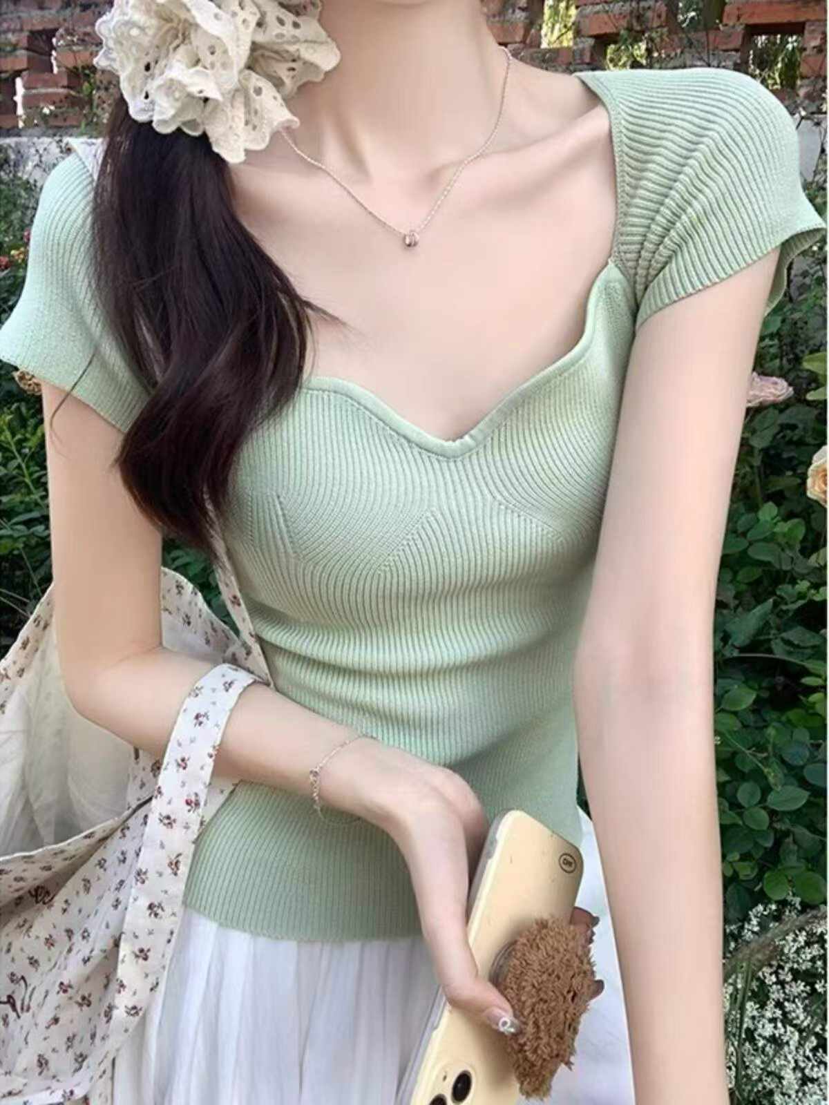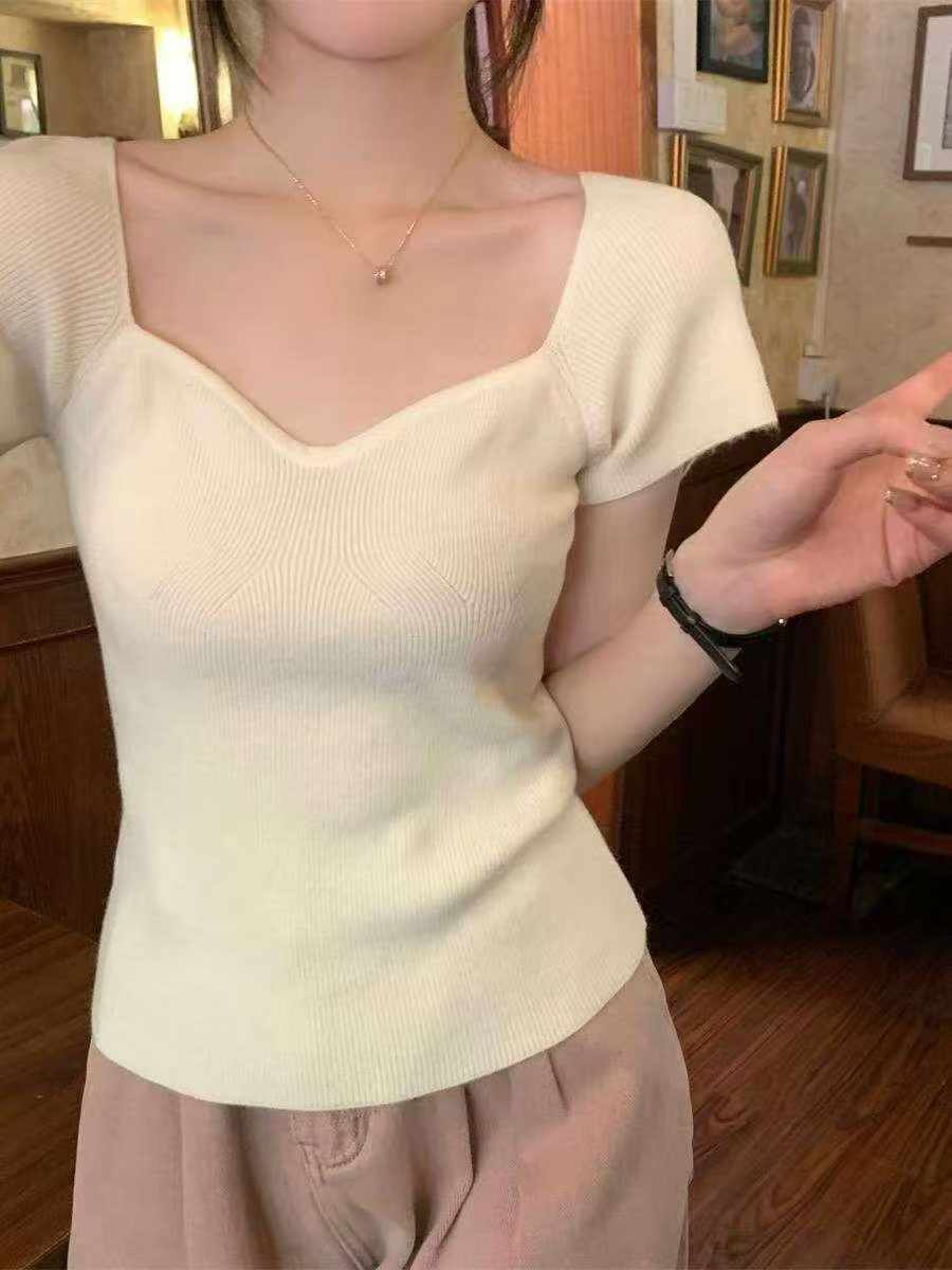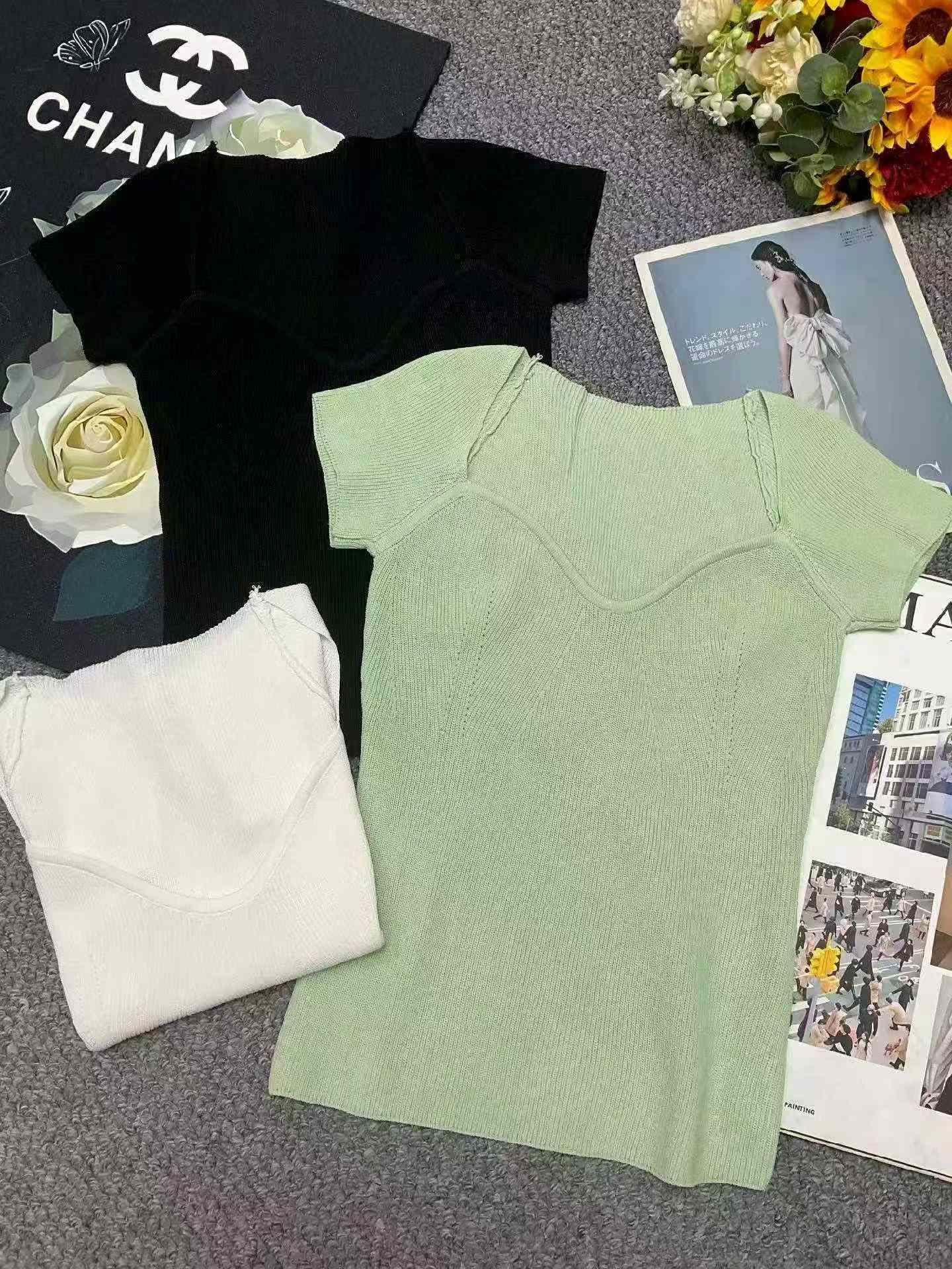 Summer New French Style Stretchy Slim Fit Women’s Knit Tops, About 400PCS, Bulk Wholesale Stock Clearance