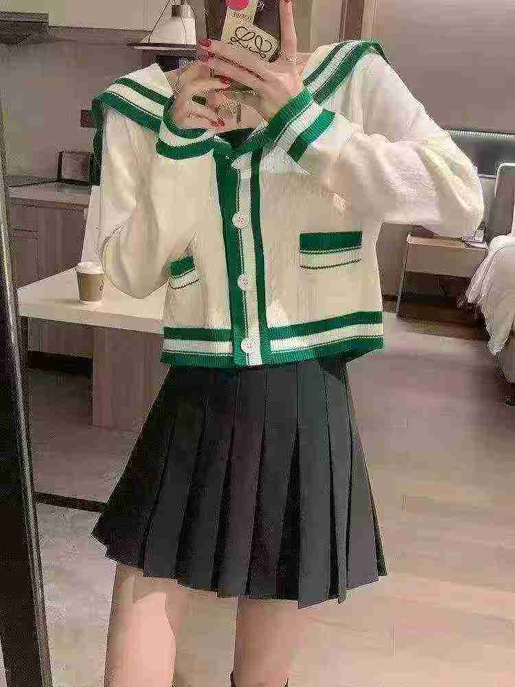 Vintage Sailor Collar Colorblock Patchwork Loose Cardigan Sweater, Around 125 Pcs All Clear Bulk Sale