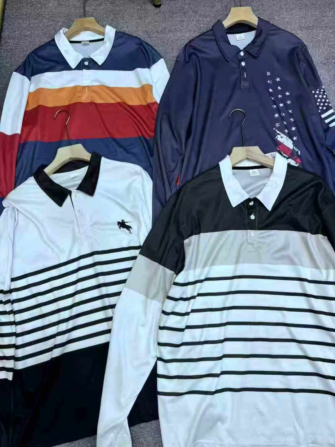 As a reliable stock lot supplier, we offer this batch of men’s polo shirts from Chinese clothing stock lots for wholesale export. This lot includes 3880 pieces of trendy oversized printed long sleeve polo shirts, featuring soft, stretchy fabric, well-finished quality and good fit. All goods are clean, neat with no defects, each piece comes with independent packaging, available in sizes S to 5XL. This quality stock clothing brings great value for your bulk clothing wholesale business.