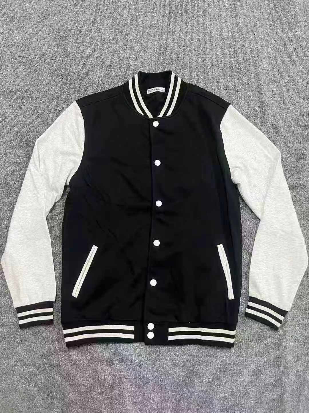As a professional stock lot supplier, we offer this batch of 1050 baseball jackets for wholesale export. This quality stock clothing comes in 5 colors with a full size range from S to 6XL, crafted with 100% cotton tripe fabric. As part of our Chinese clothing stock lots, this item provides great value for bulk clothing wholesale, ideal for businesses sourcing affordable ready stock inventory.