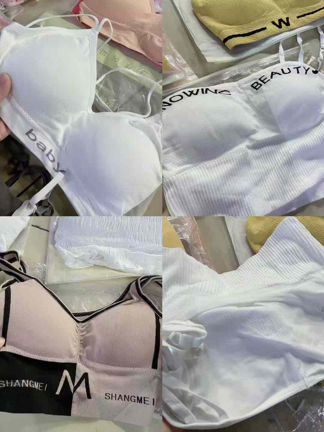 As a reliable stock lot supplier, we are offering Chinese clothing stock lots of newly collected seamless bralettes with chest pads for wholesale export. This quality stock clothing comes as a bulk clothing wholesale lot, totaling 1870 pieces. Each bralette features a seamless design, built-in chest pads, individual packaging, and multiple color options per style, making it suitable for year-round wear. This stock lot provides great value for businesses looking to source in-demand inventory through bulk clothing wholesale of Chinese clothing stock lots.