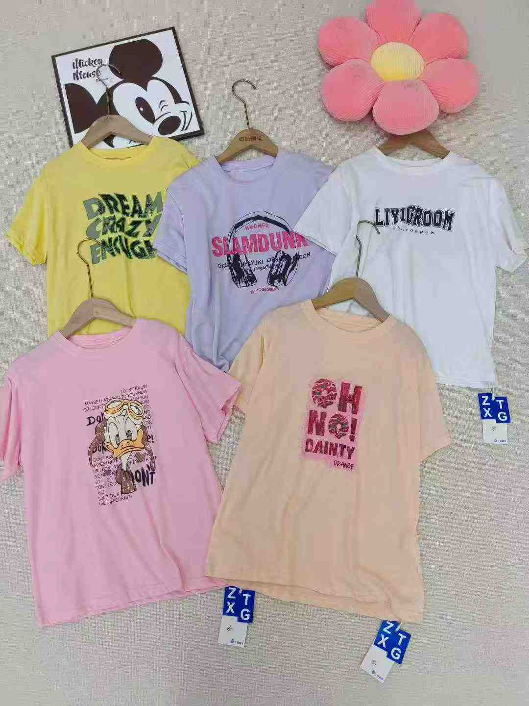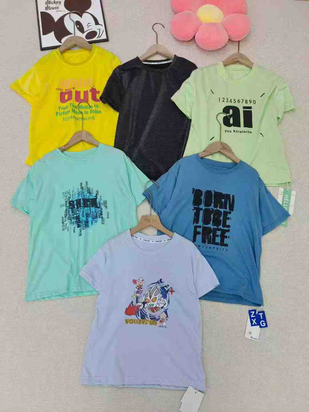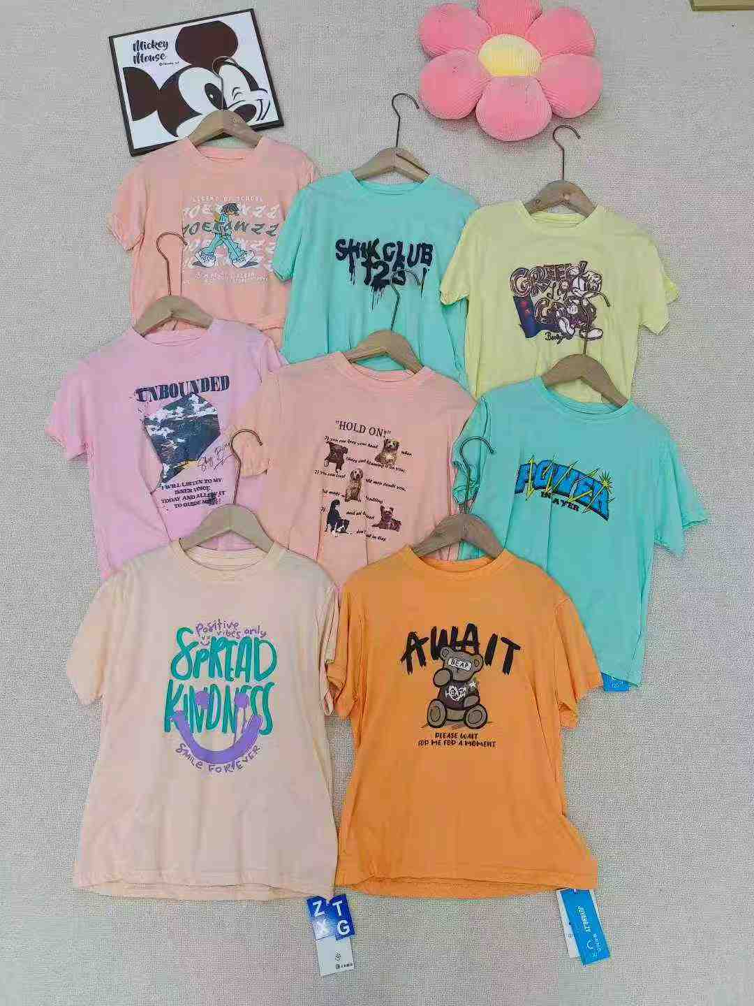 This is a bulk wholesale export of Chinese clothing stock lots, offering great value on 9200 pieces of quality stock clothing for kids. The short sleeve tops feature neckline binding and are individually packed with tags. As a reliable stock lot supplier, we provide these bulk clothing wholesale items in sizes ranging from 110 to 160, suitable for various age groups.