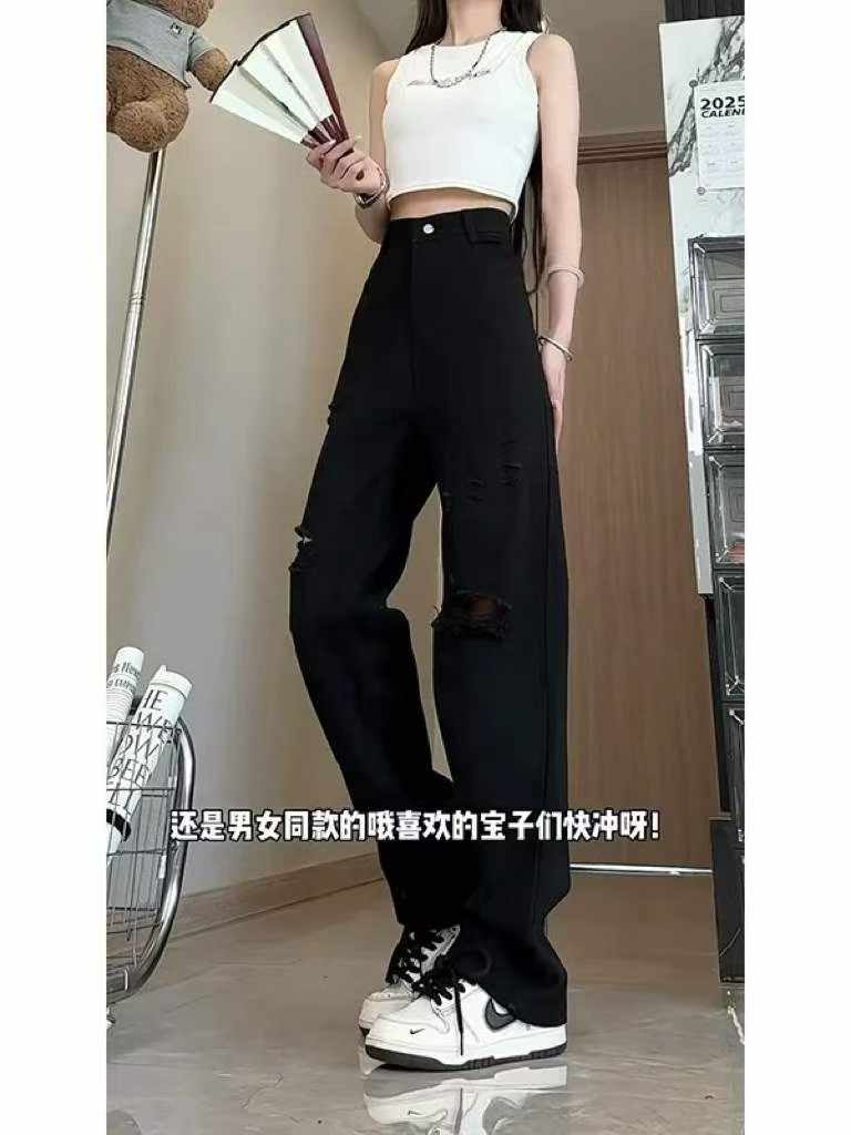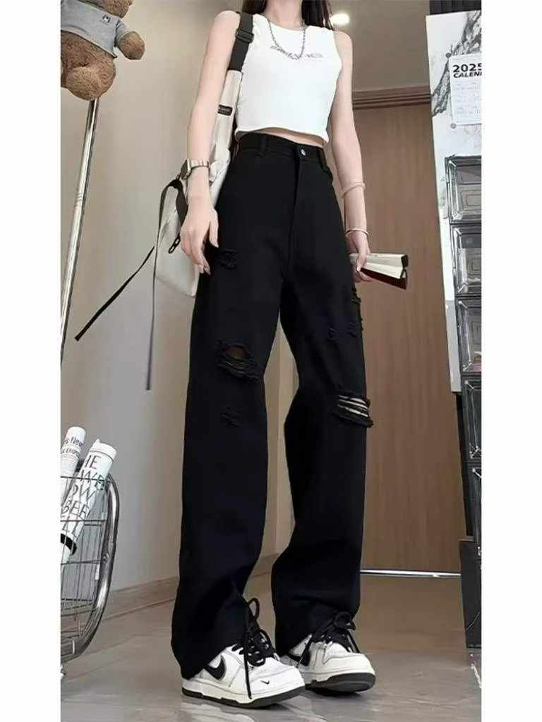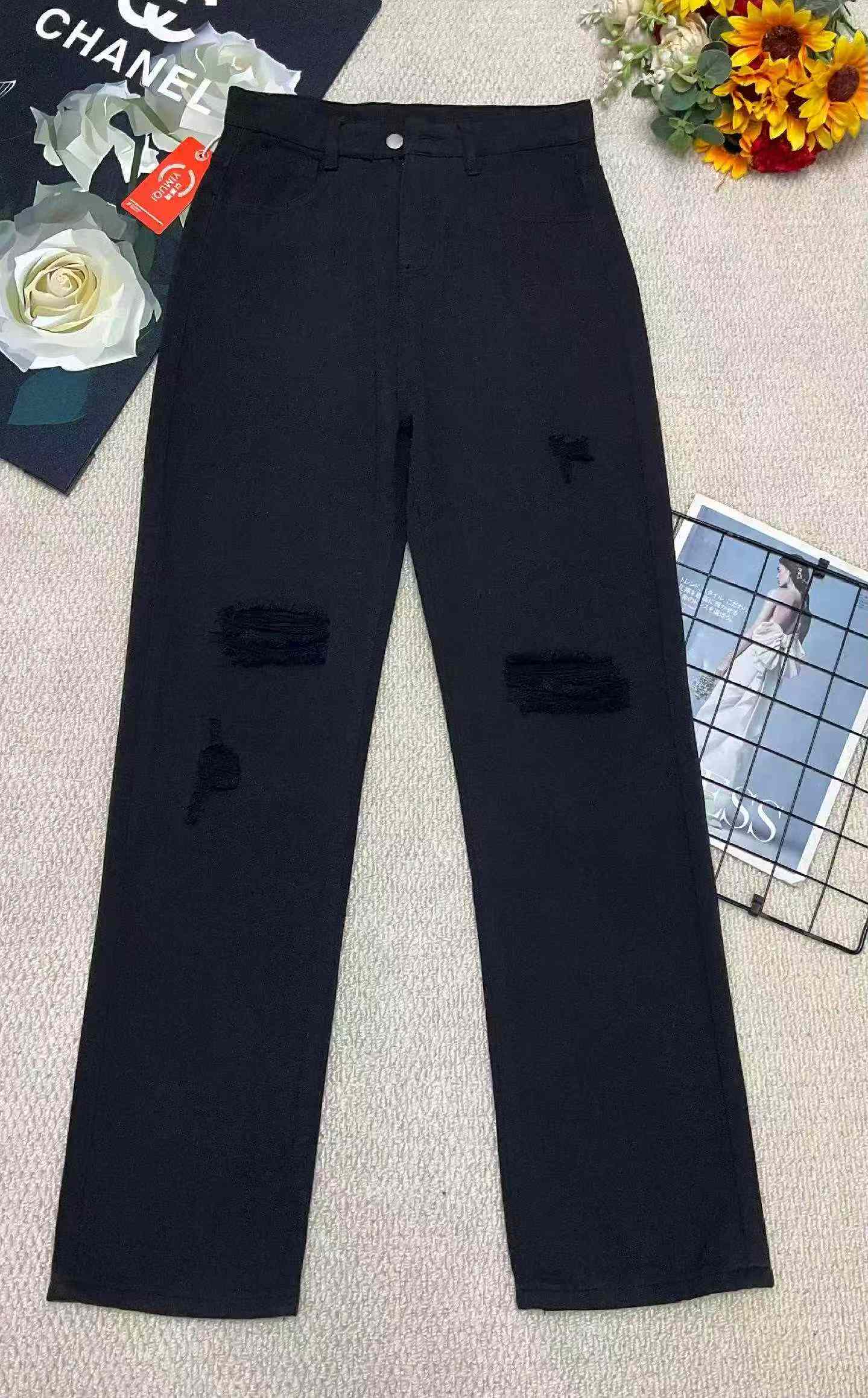 Wholesale Lot of 400pcs Spring New Black Distressed Straight-Leg Wide-Leg Jeans for Plus Size, M-3XL, Independent Packing with Tags