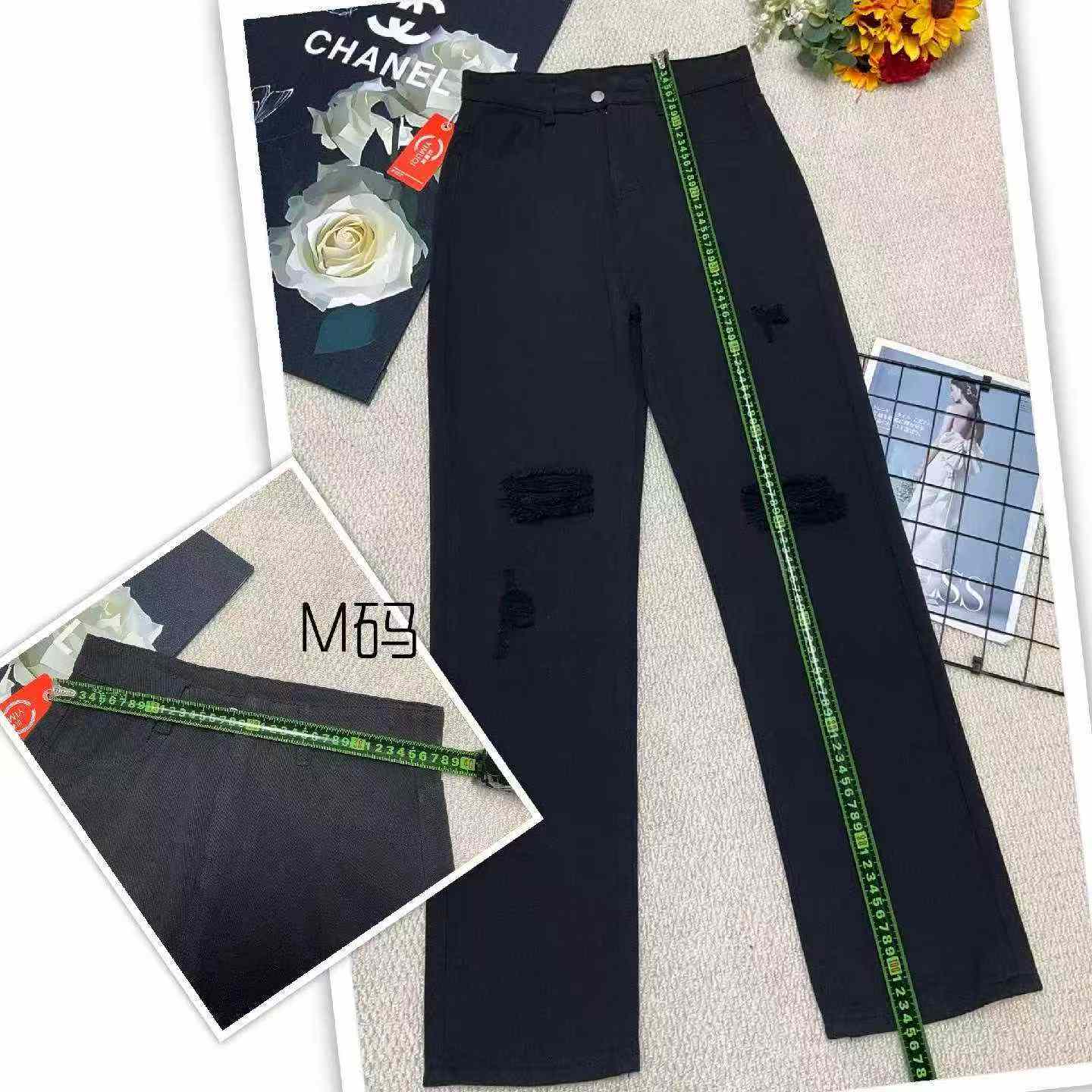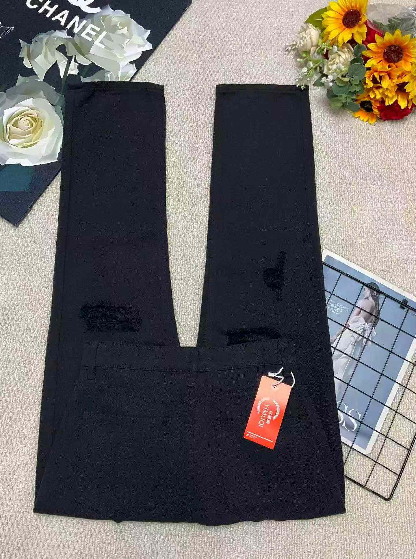 This clothing stock lot offers 400 pieces of black distressed straight-leg jeans in sizes M-3XL. They are independently packed with tags, suitable for plus-size customers.