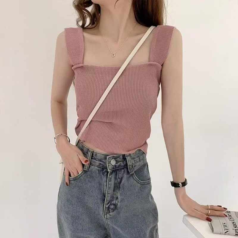 Wholesale Lot of 820 Summer New Korean Style Bright Color Slim Knit Camisole Tops, Independent Packing