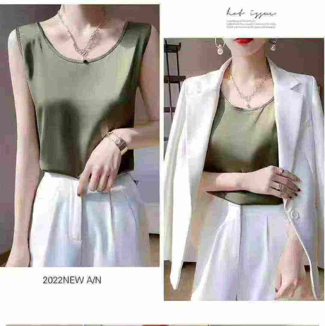 Wholesale Satin Tank Tops Chinese Stock Lot – 350pcs, Individually Zipper Packed, Single Style & Color – CNY5.3/pc