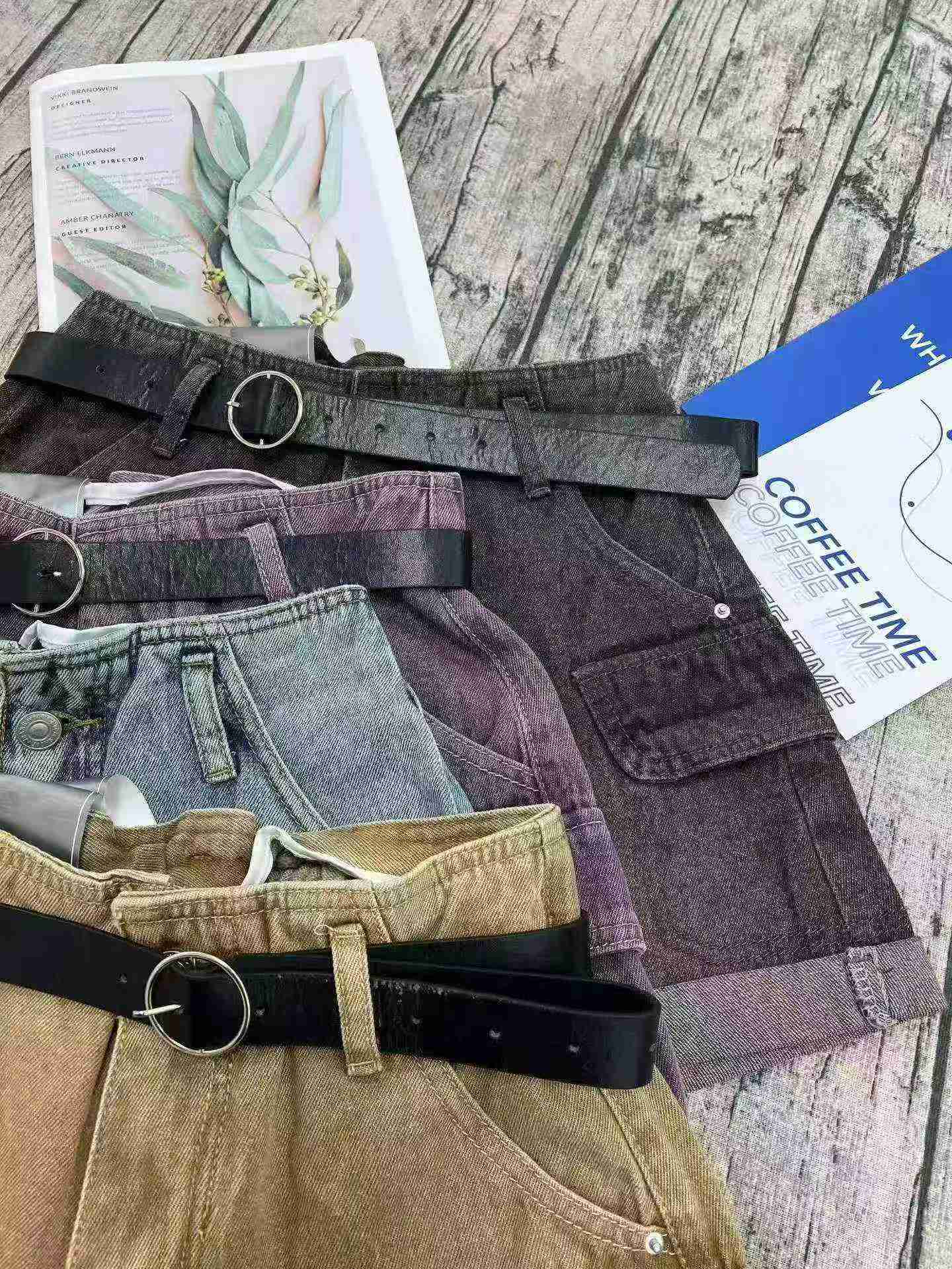 Women’s Summer High Waist Maillard Color Cargo Denim Shorts Straight Wide Leg 350 Pieces Bulk Clearance